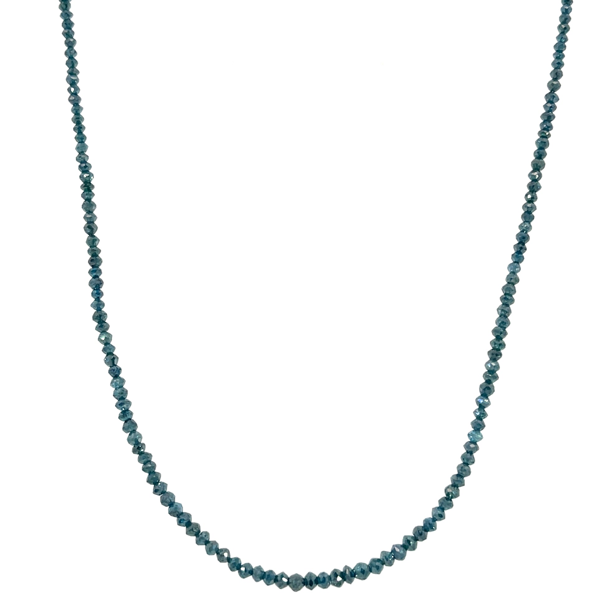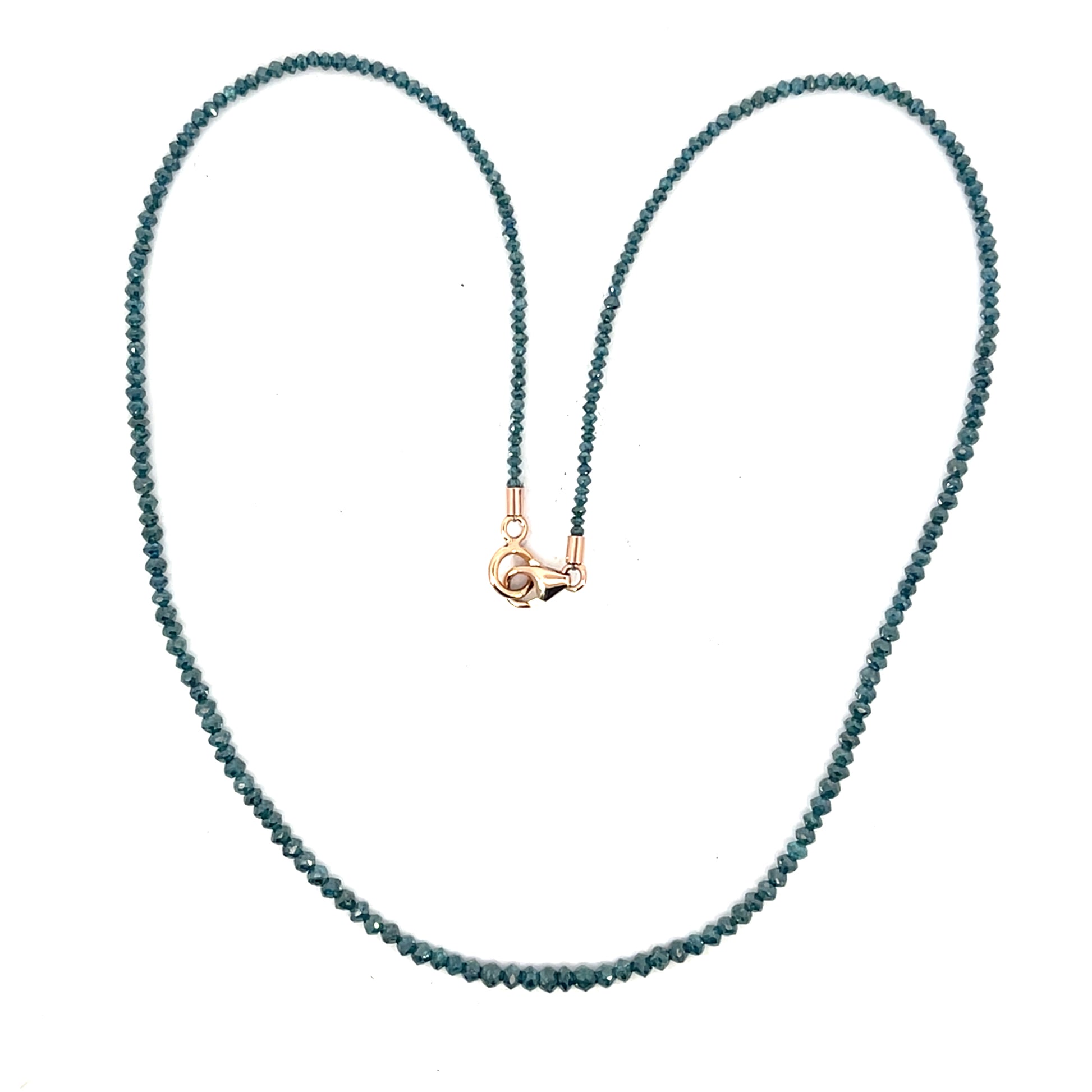 A 14.94 total carat weight blue diamond necklace with a rose gold clasp. 16" long. This necklace was made and designed by llyn strong.