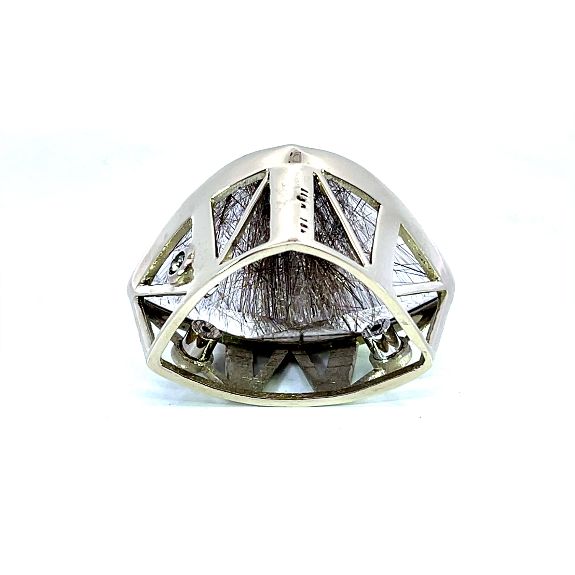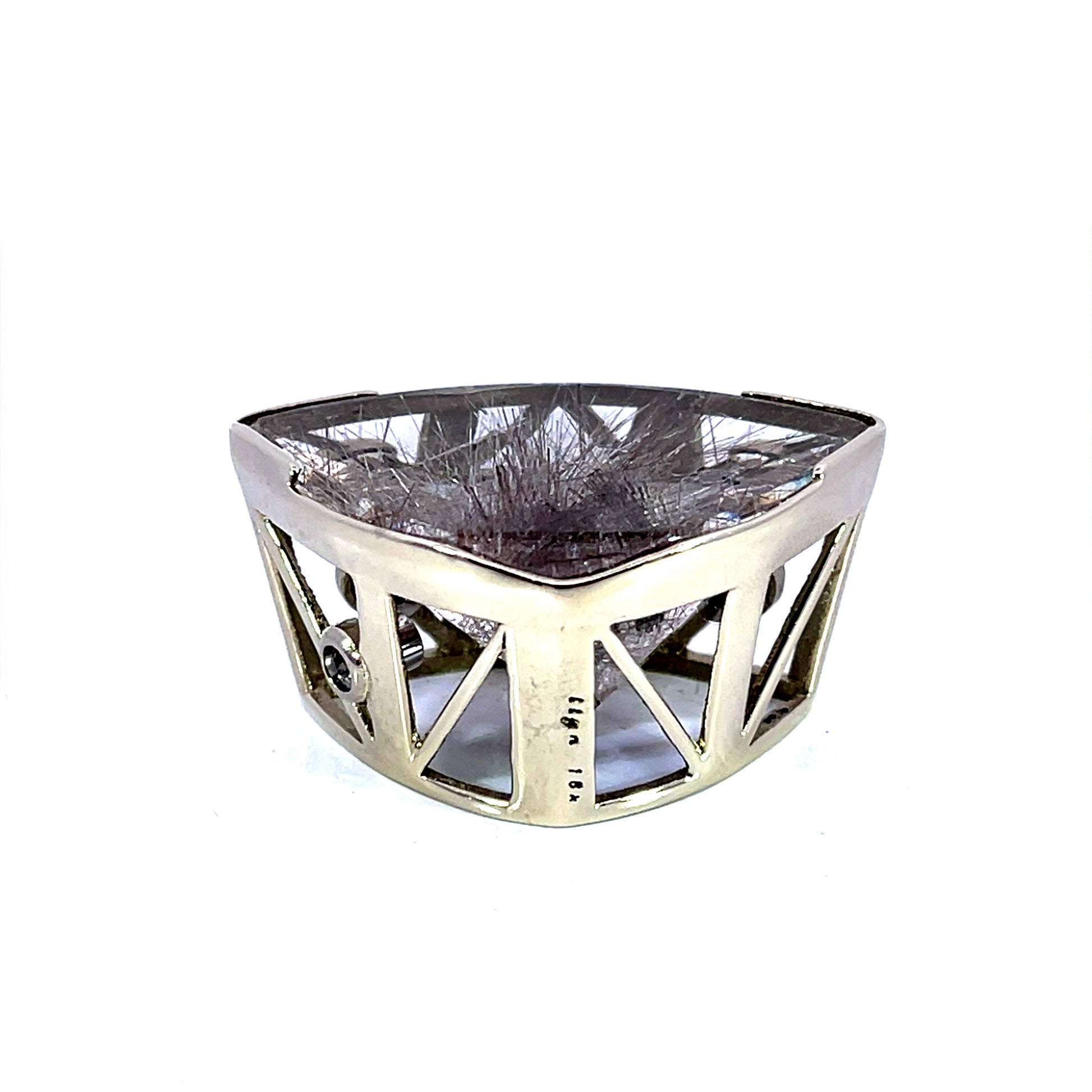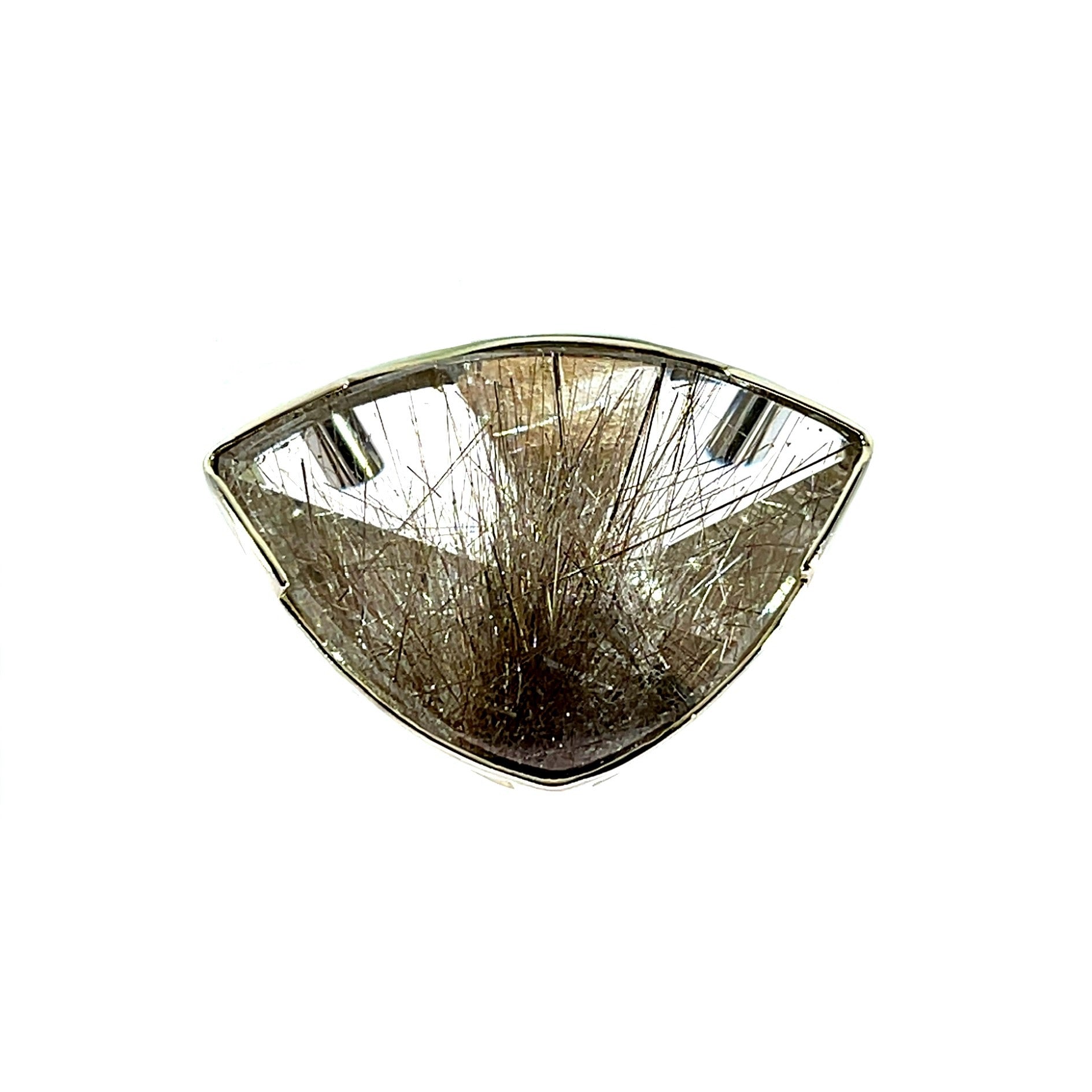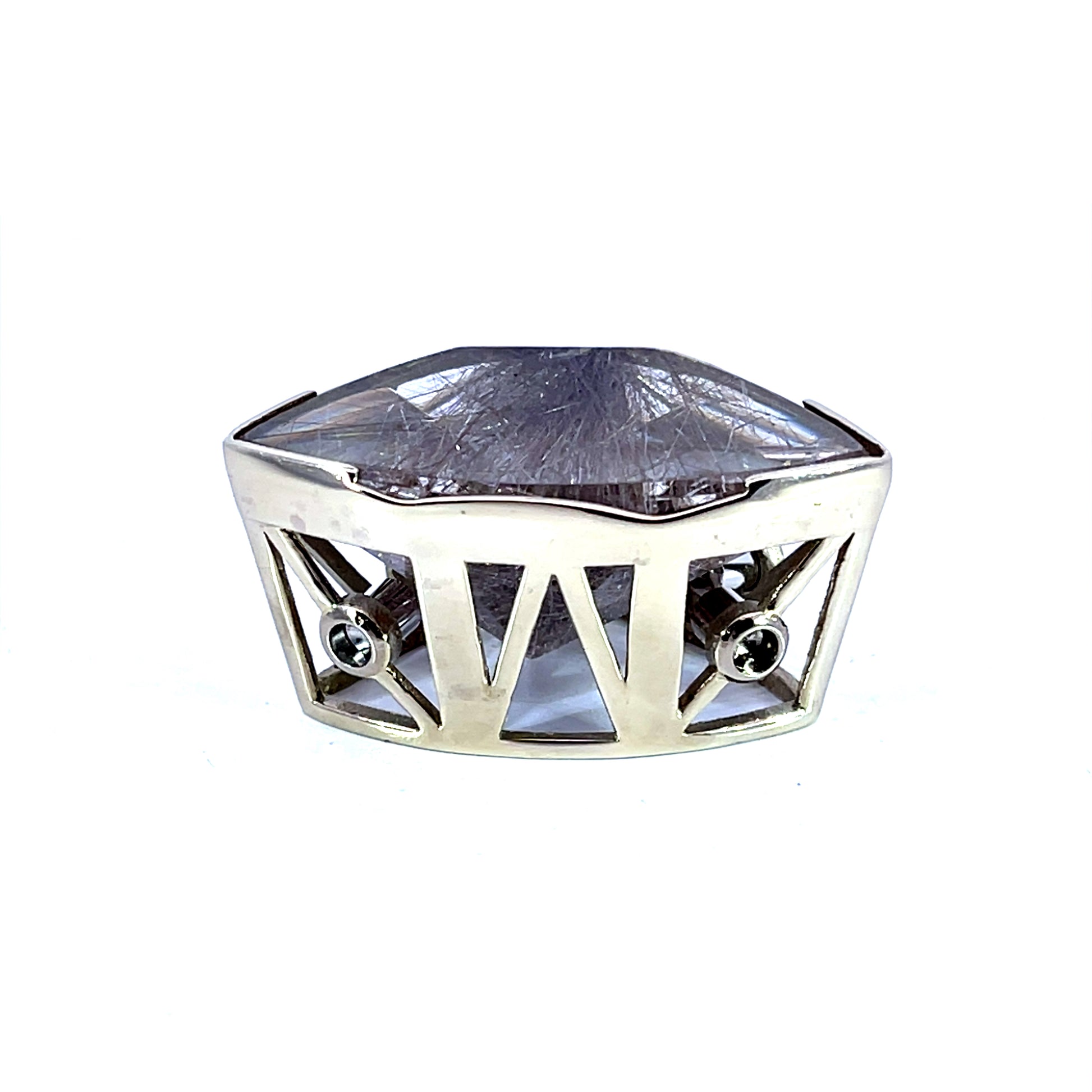 A 18k white gold clasp bezel set with a 53.18ct silver rutilated quartz. This clasp was made and designed by llyn strong.