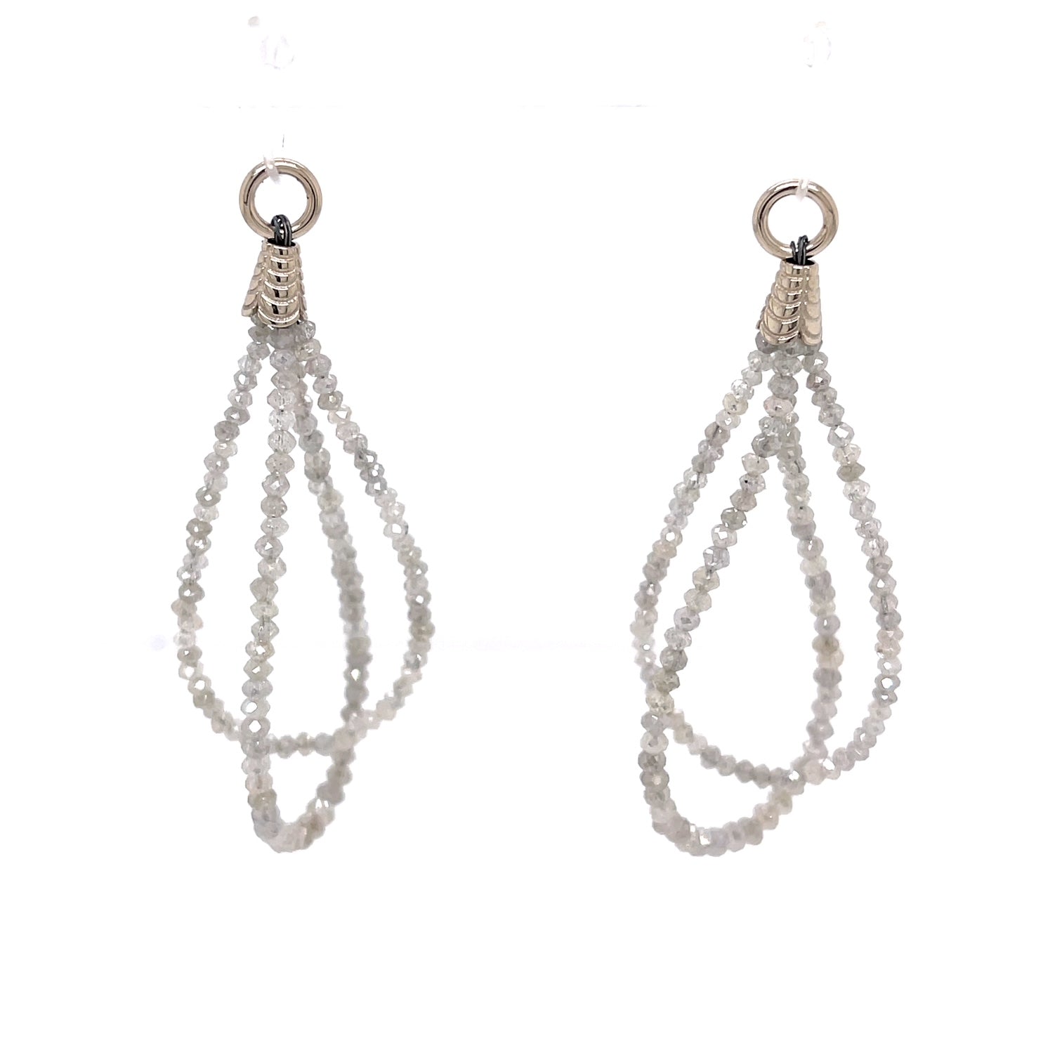 A pair of 15.94 carat light gray diamond loop jackets with 18k white gold huggie parts. These jackets were made and designed by llyn strong.