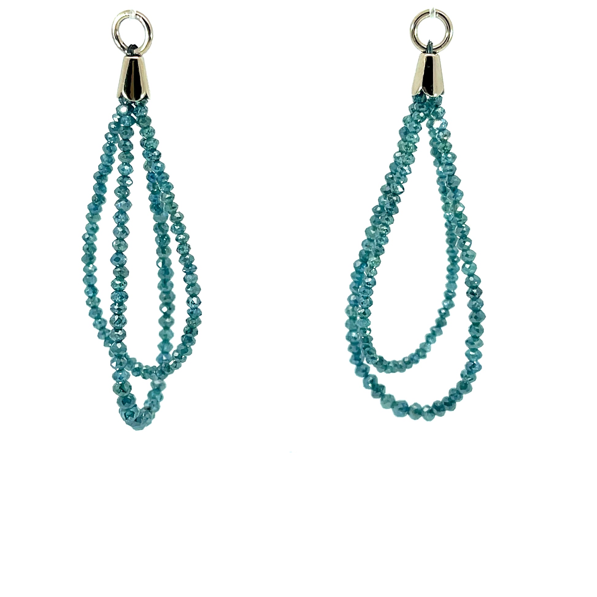 A pair of 18k white gold blue diamond loopy jackets with 17.60 carats of faceted blue diamond beads. These jackets were made and designed by llyn strong.