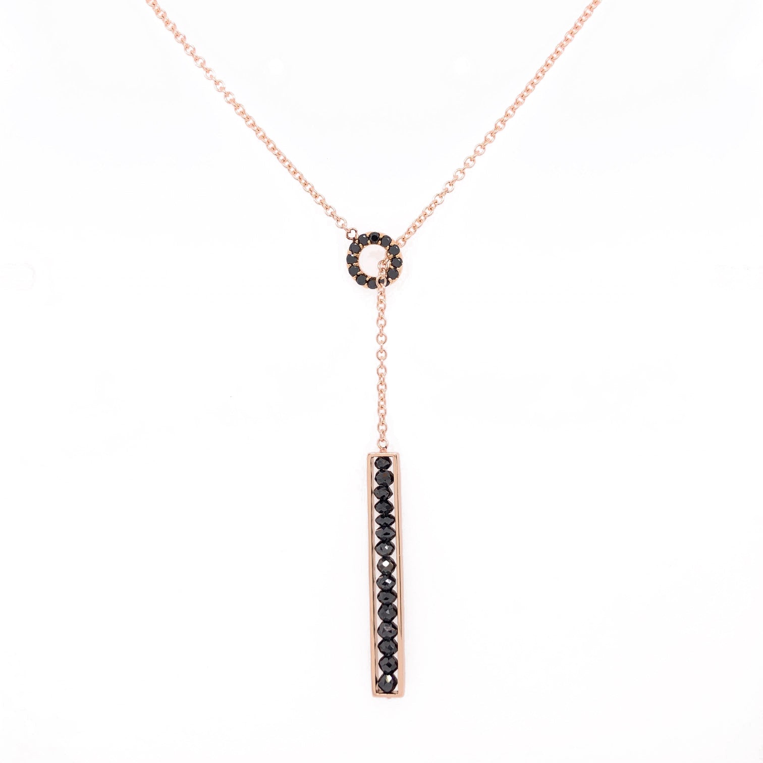 18k Rose Gold Black Diamond Lariat Necklace