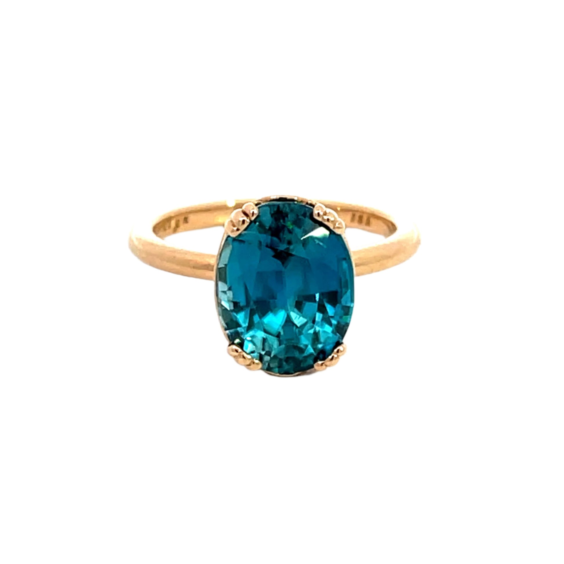 Blue Zircon Ring in 18k Rose Gold – 7.21 Carats