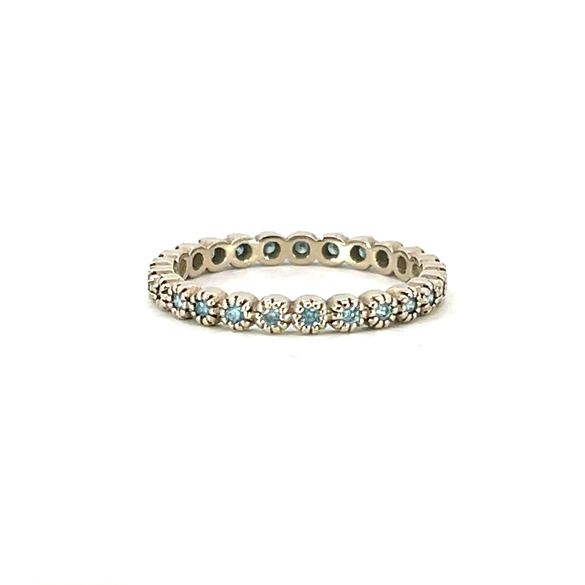 18k White Gold and Aqua Blue Diamond Anniversary Band