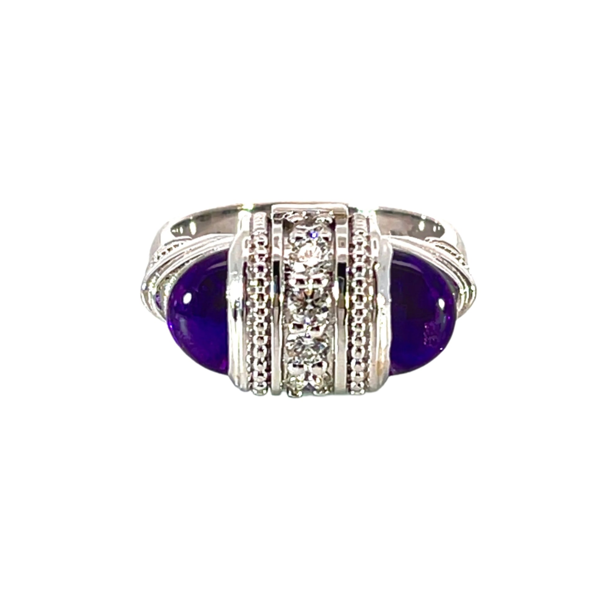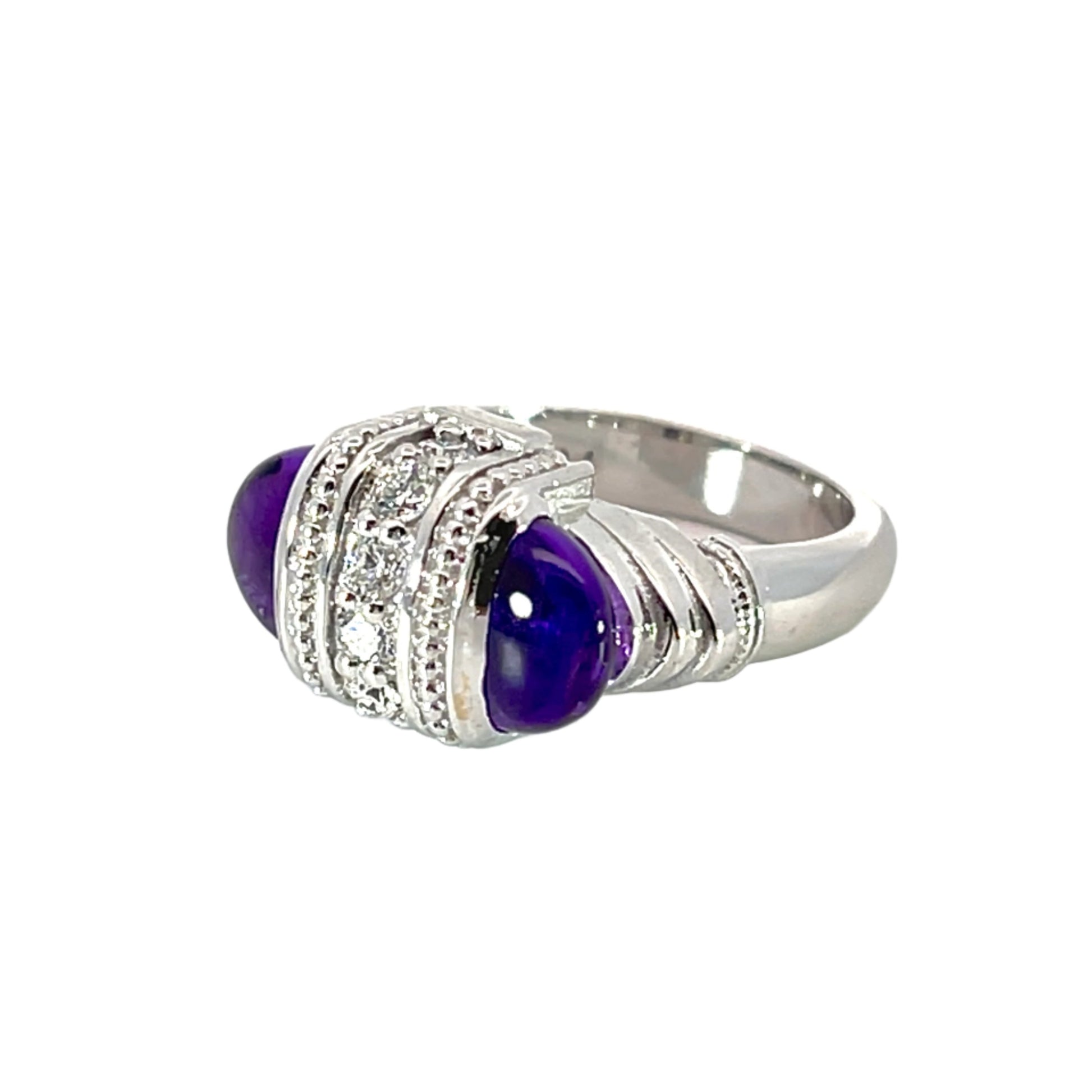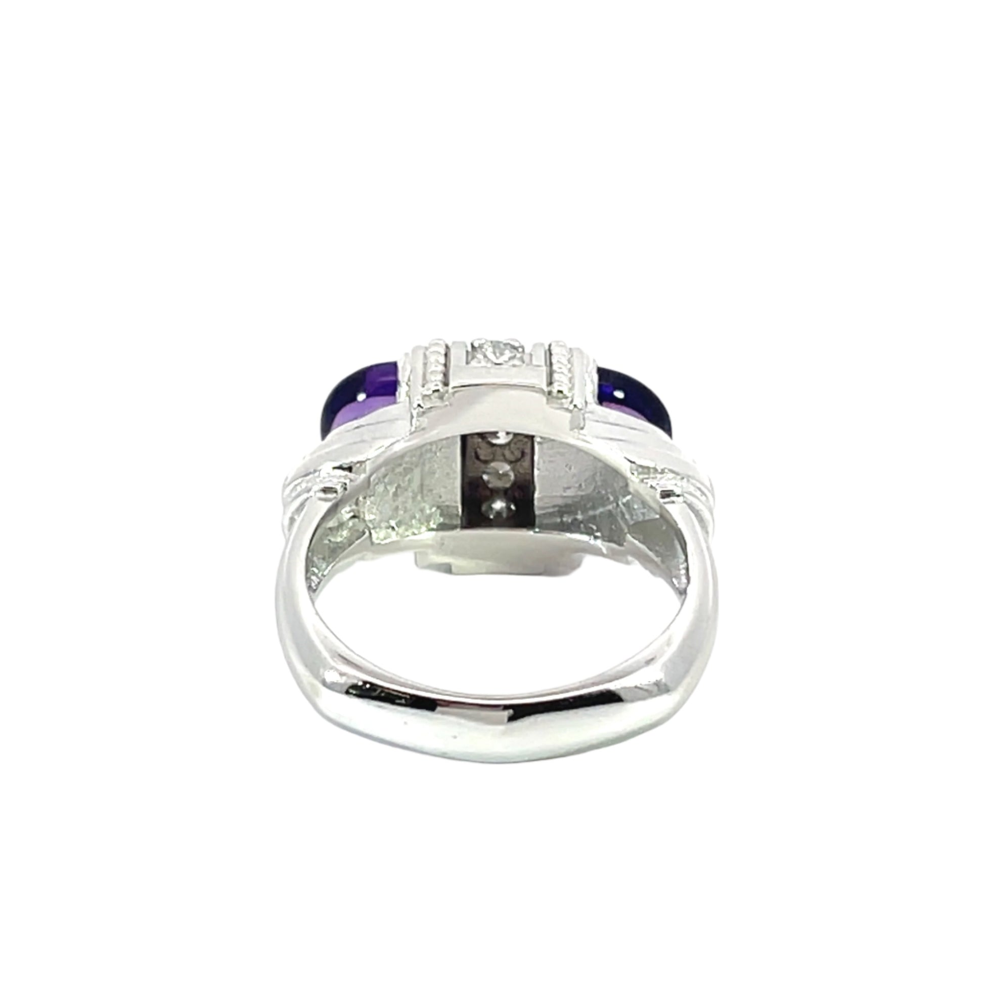 18k White Gold Arch Ring with Amethyst and White Diamonds