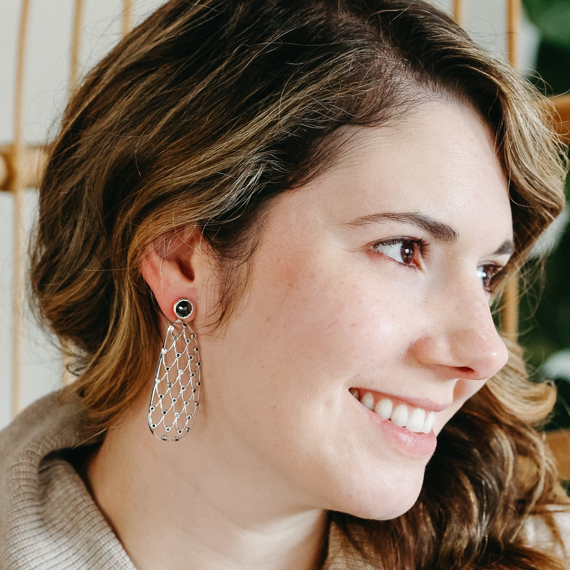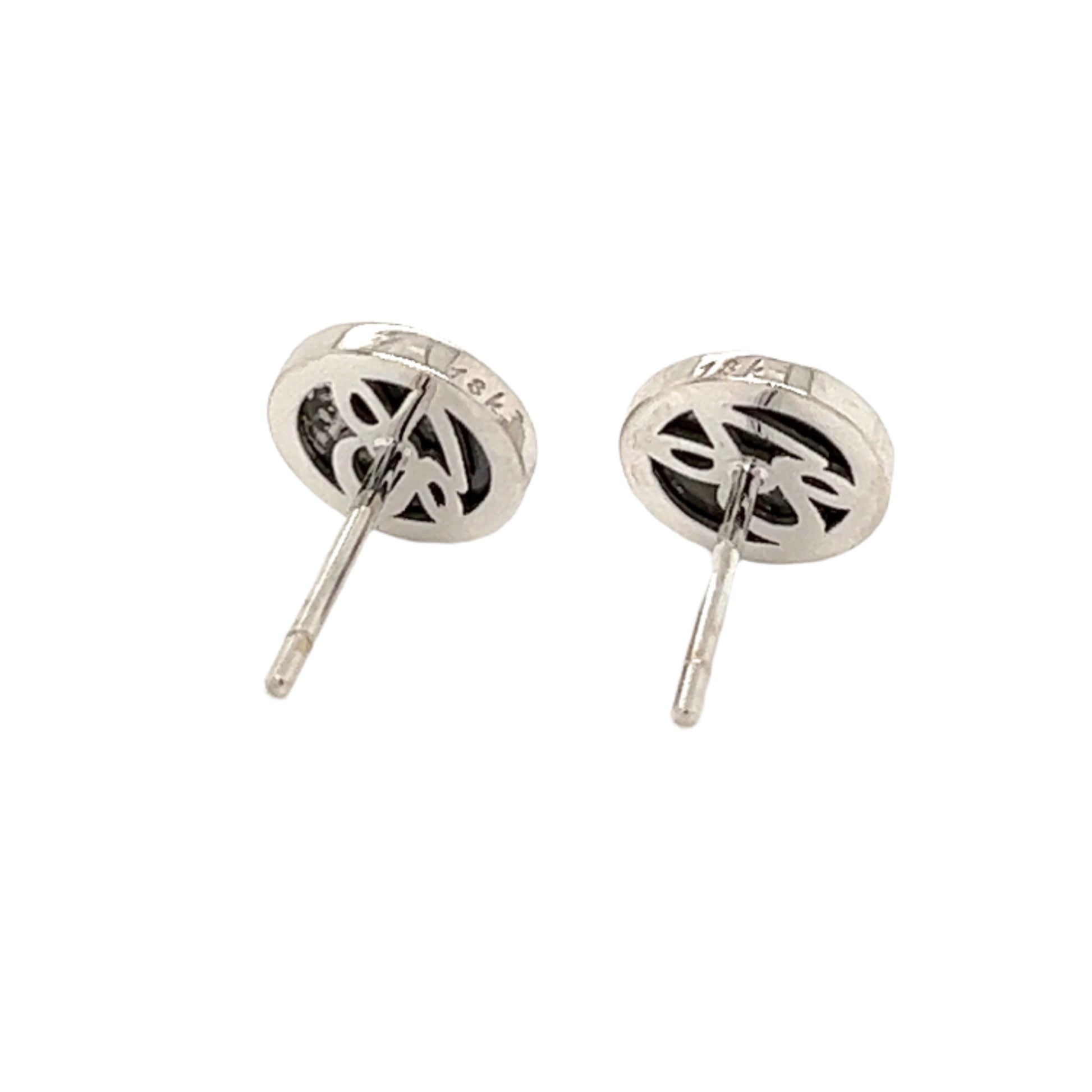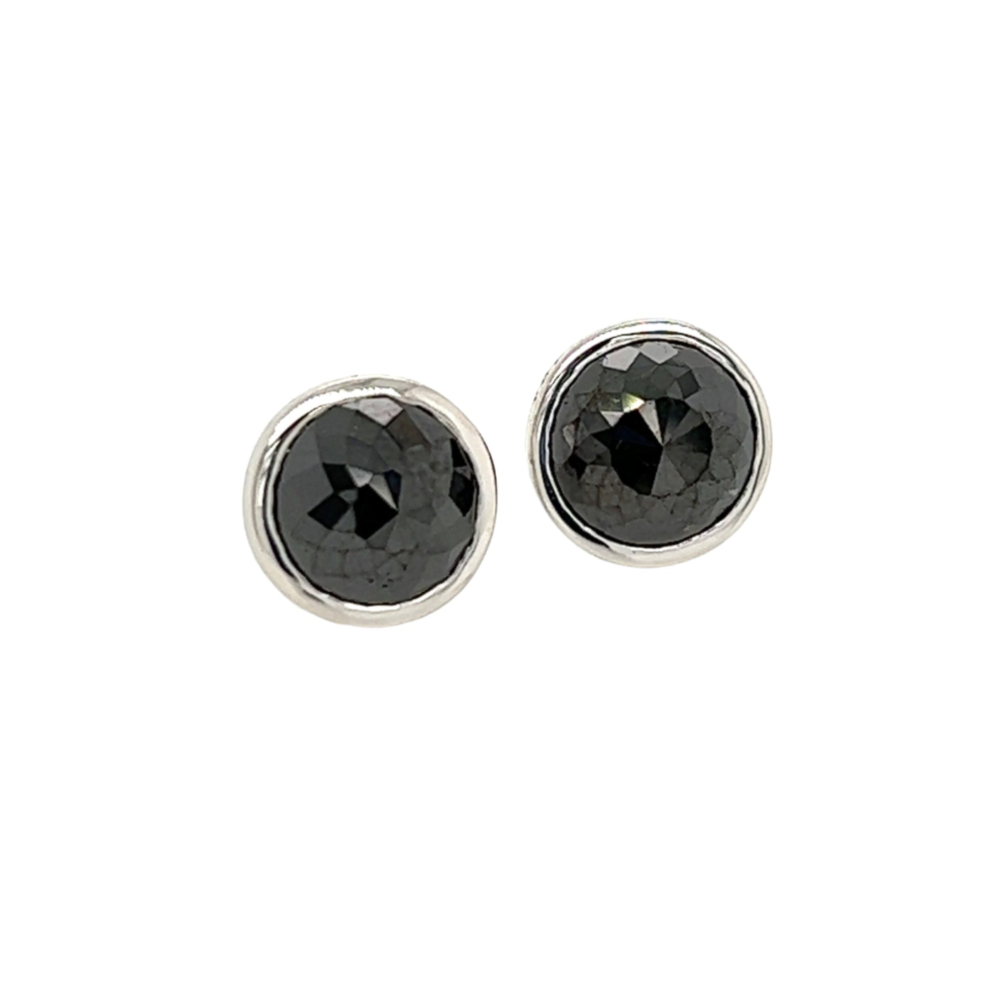 A pair of 18k white gold earring studs featuring two round rose but black diamonds 3.63 total carat weight. These studs were designed and made by Sydney Strong.