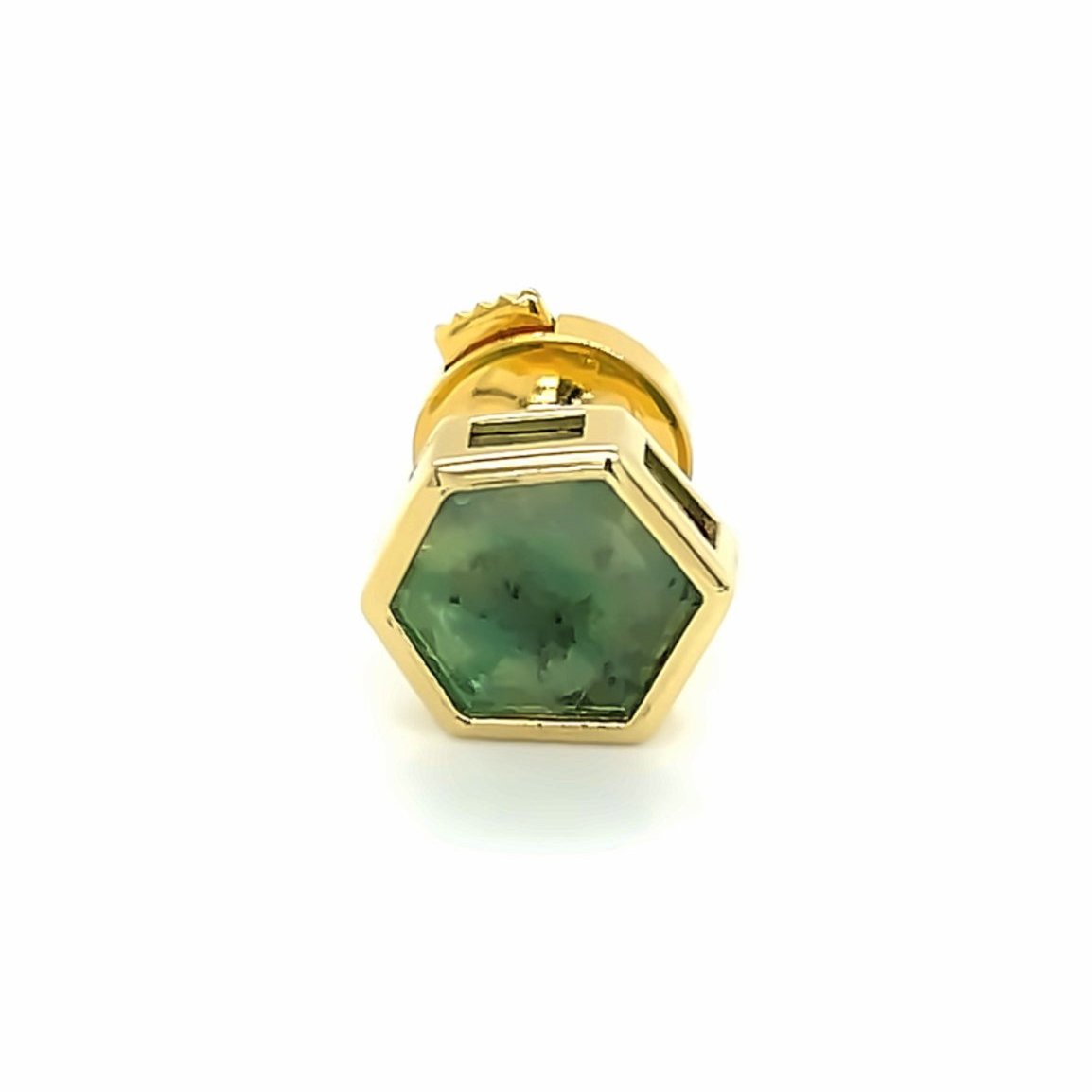 An 18K yellow gold and hexagonal shaped emerald lapel pin. Designed and made by llyn strong.