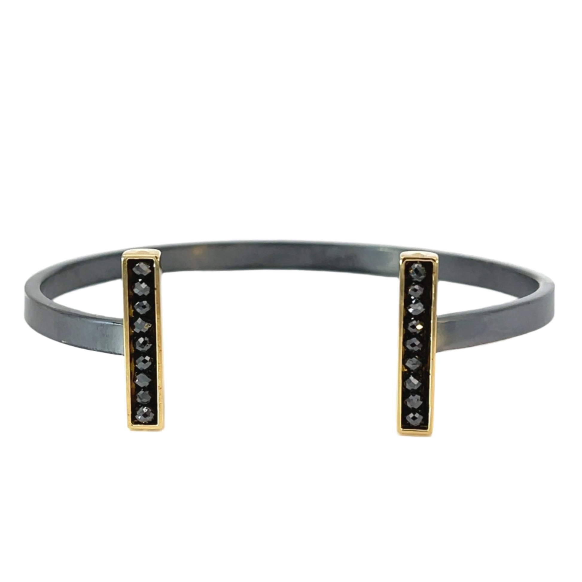 18k Yellow Gold and Oxidized Silver Cuff Bracelet with Black Diamond Beads