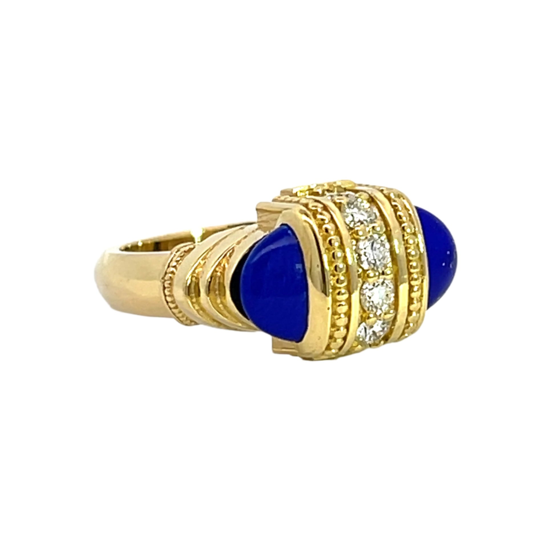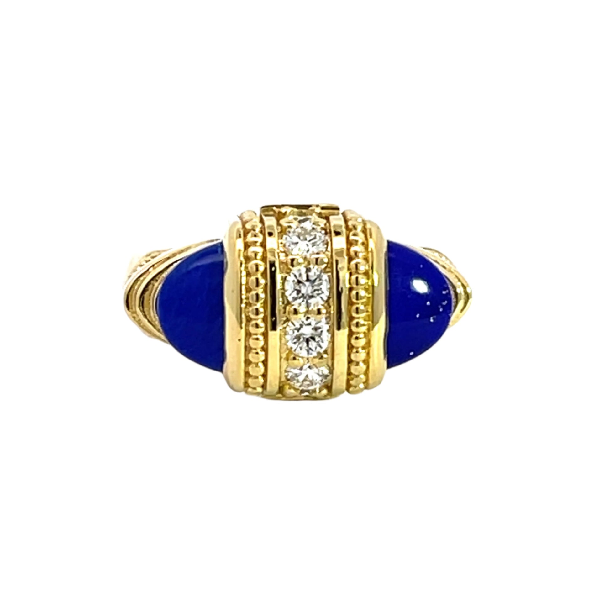 18k Yellow Gold Lapis and White Diamond Arch Ring