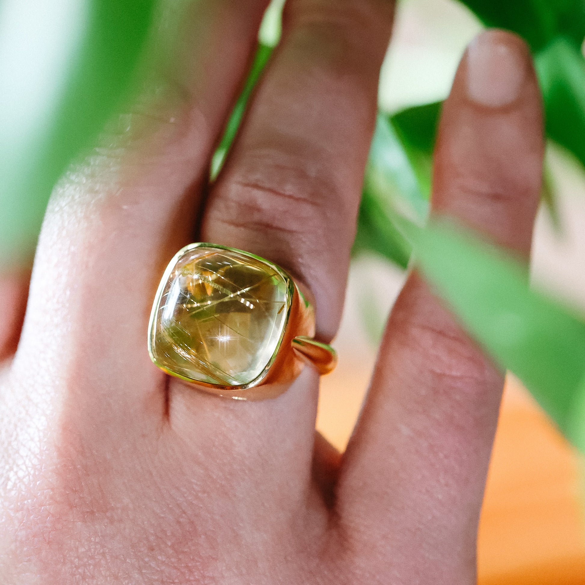 Rutilated Quartz Ring in 18k Yellow Gold – 22.55ct