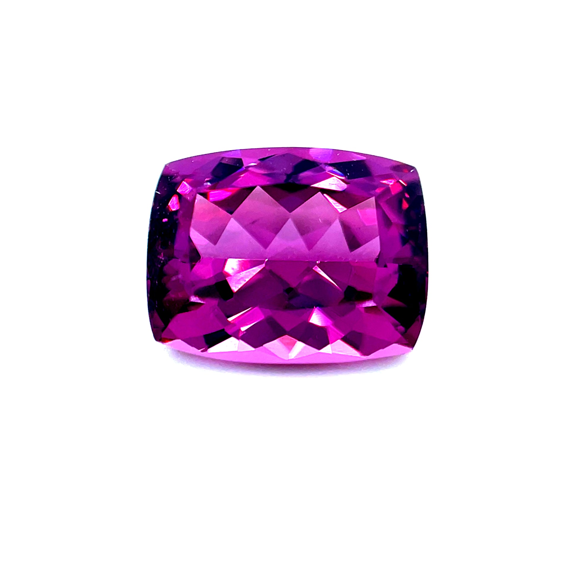 A 11.82mm x 9.21mm x 6.67mm cushion cut natural purple garnet, 7.08carats.