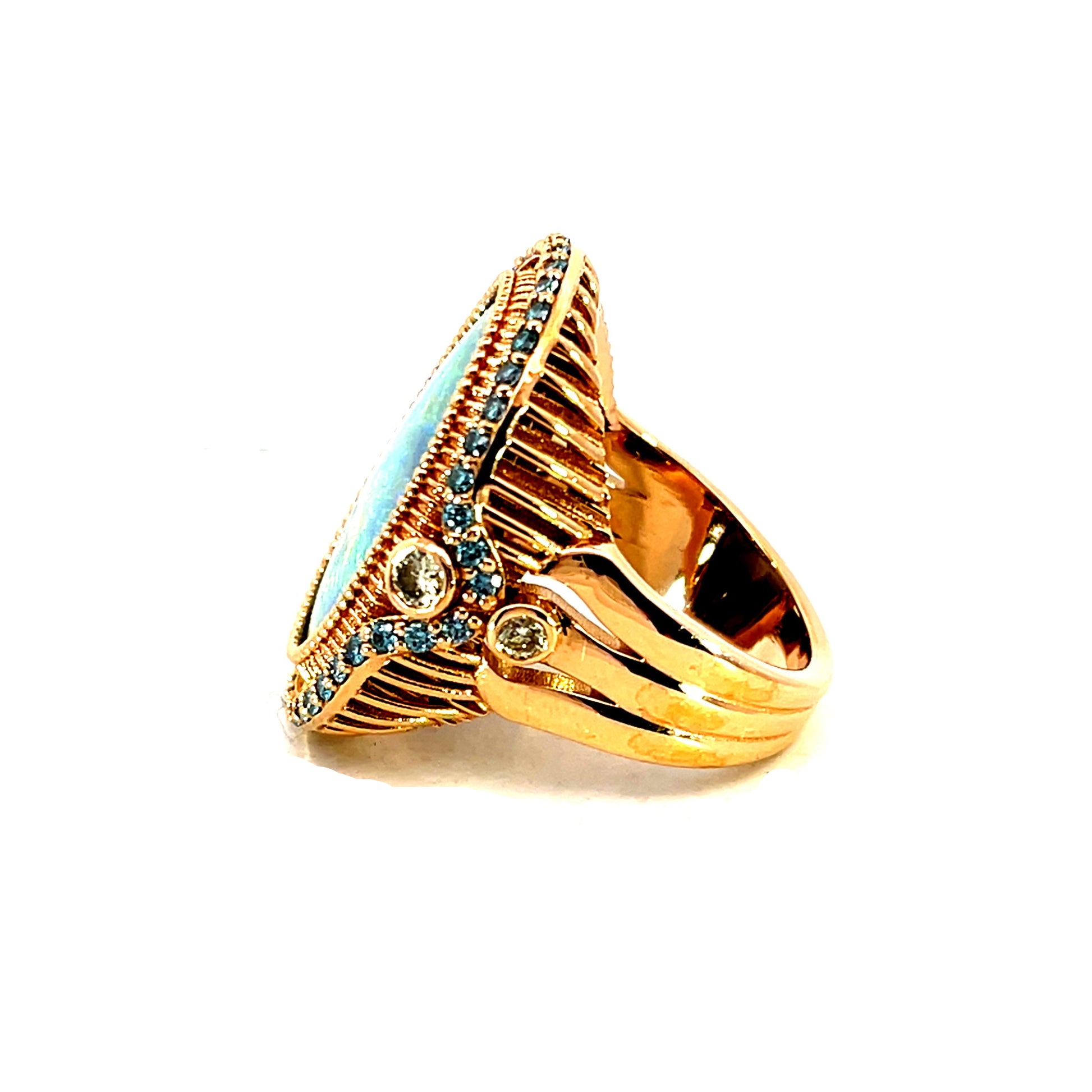 18k Rose Gold Australian Opal Ring with Blue and Yellow Diamonds