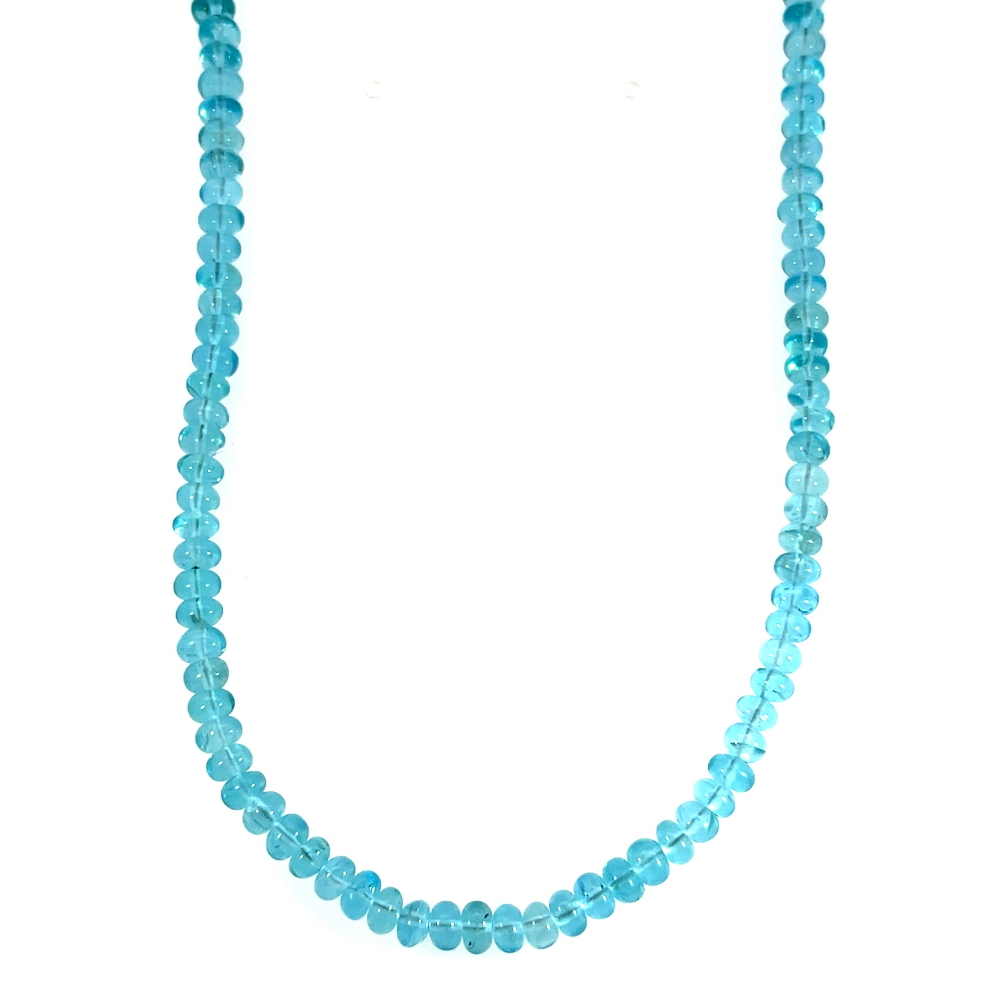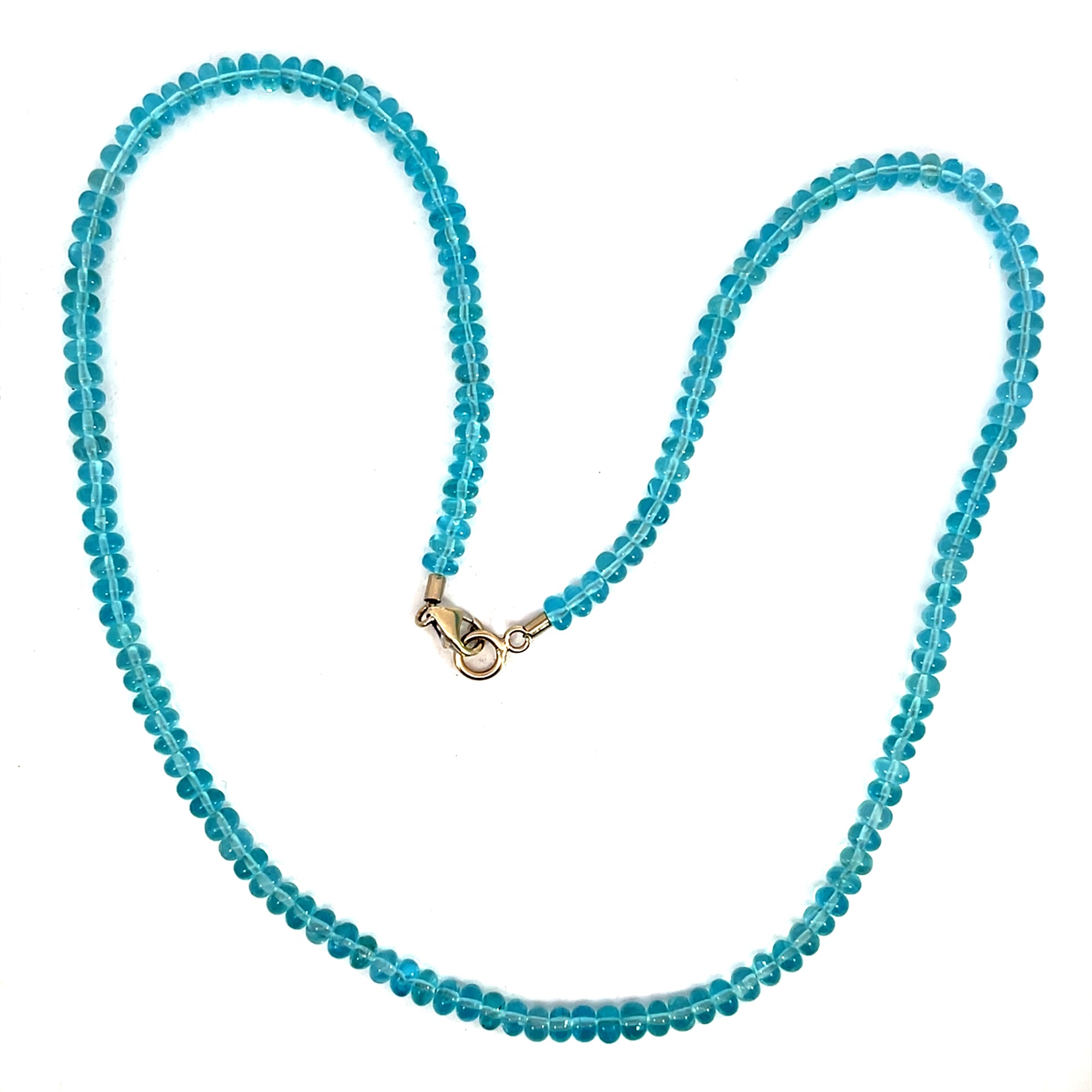 An apatite necklace with a white gold clasp. 17" long. This necklace was made and designed by llyn strong.