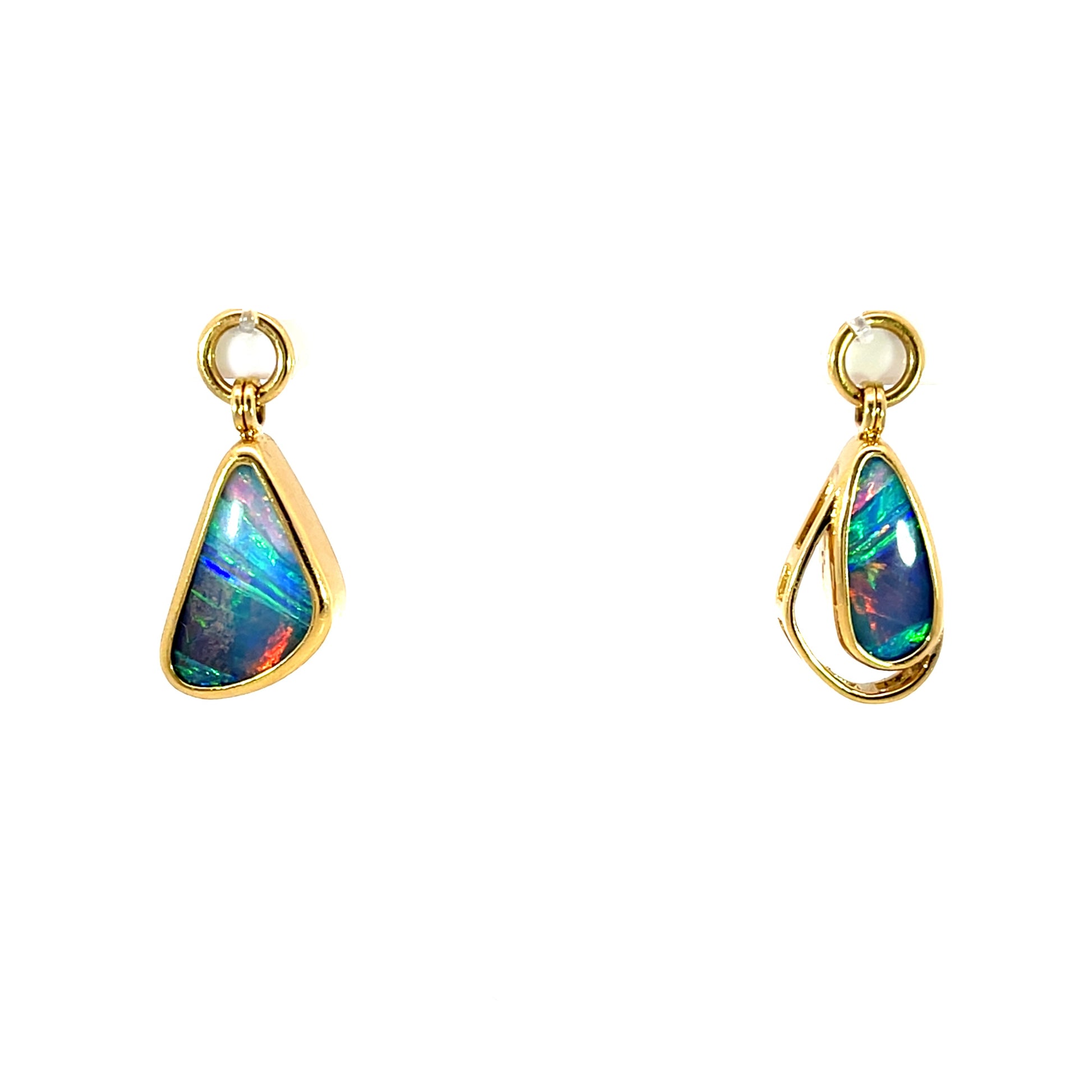 Asymmetrical Yellow Gold Boulder Opal Earring Jackets