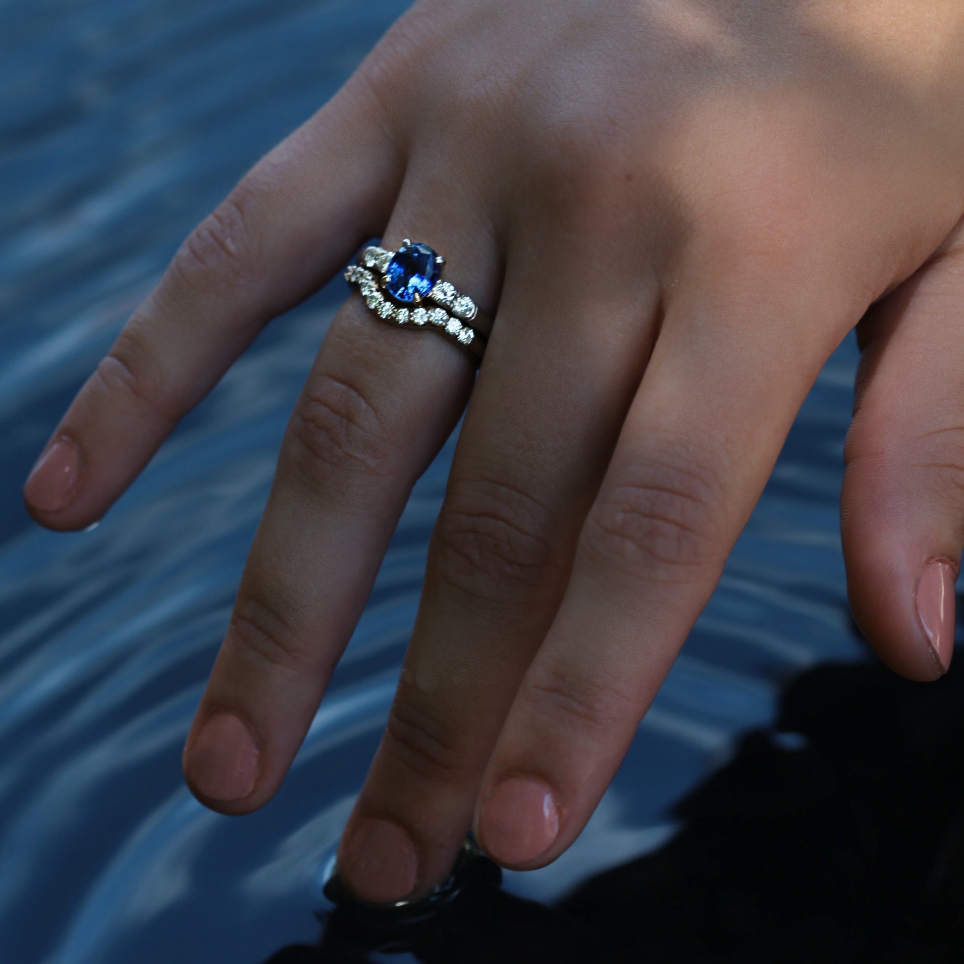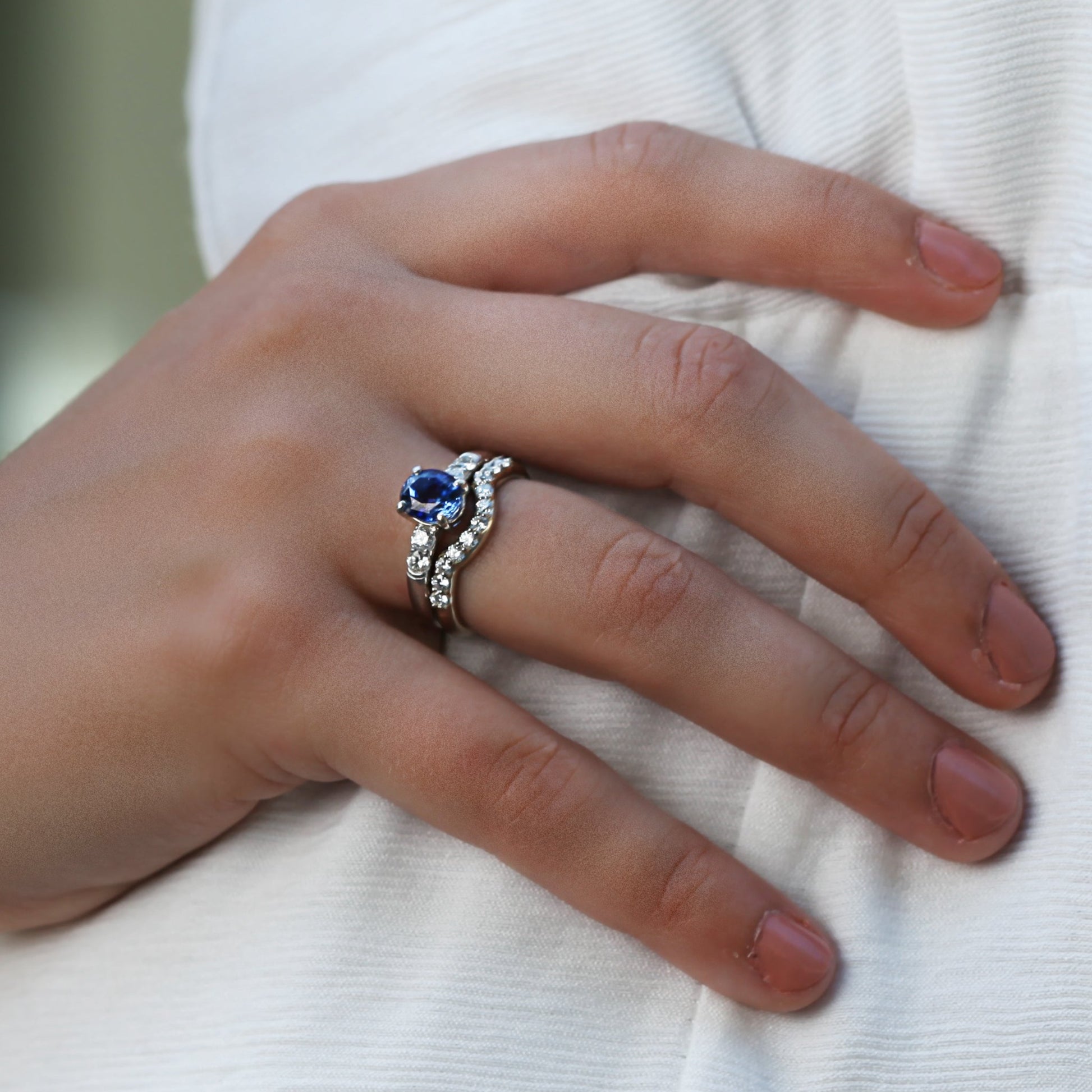 Shown with, Blue Sapphire Infinity Band.