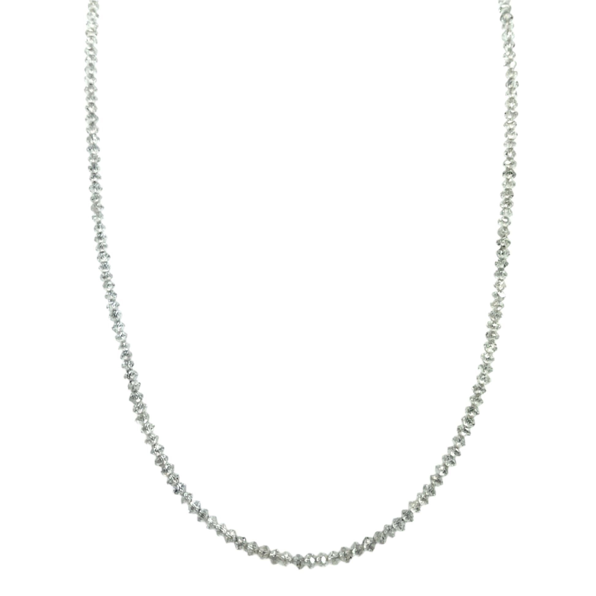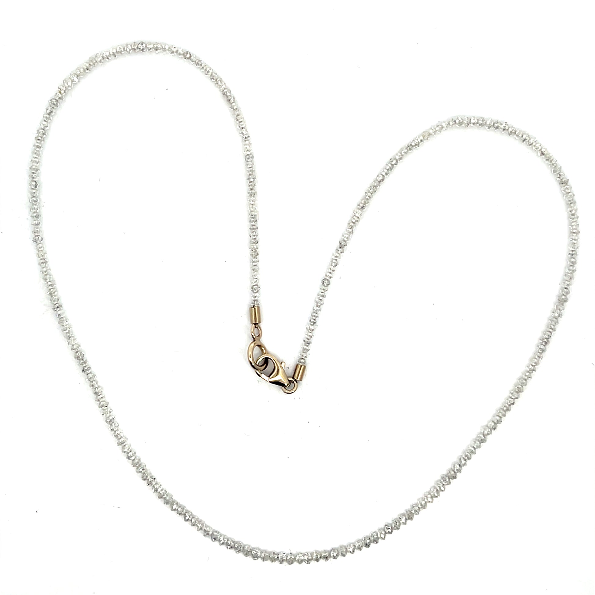 A lab-grown FVS diamond strand with a white gold clasp. 13.5 total carat weight and 15.75" long. This necklace was made and designed by llyn strong.