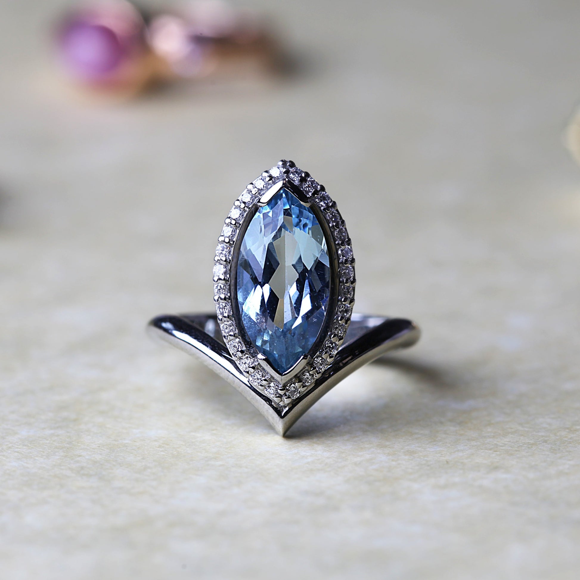 A marquise aquamarine ring like this one doesn't sit quietly in a drawer—it glows, it moves, it speaks. And if it feels like it was made for you, that’s because it was.