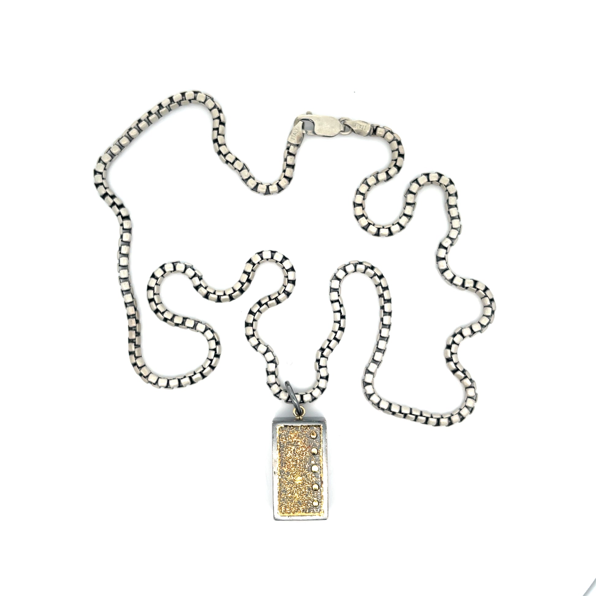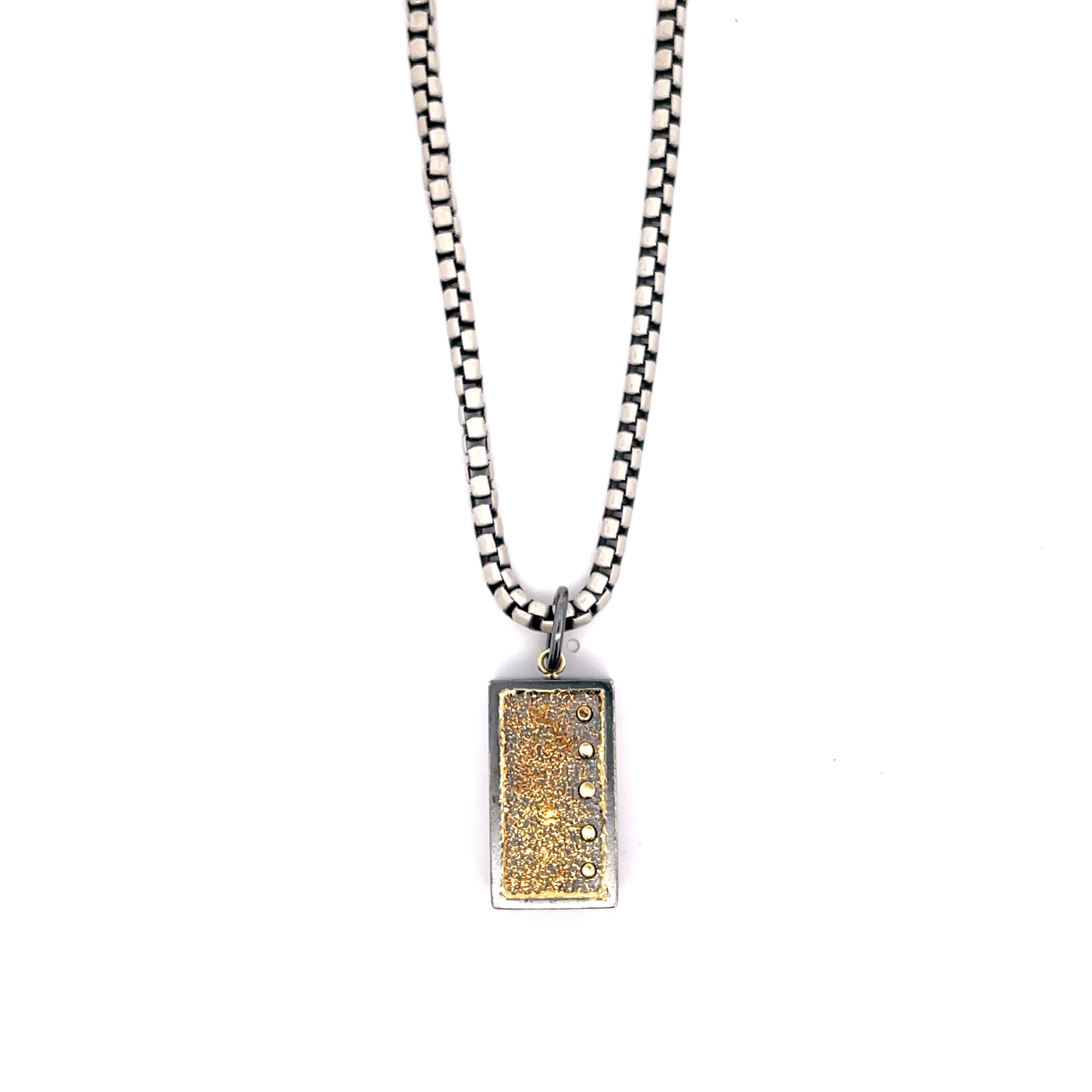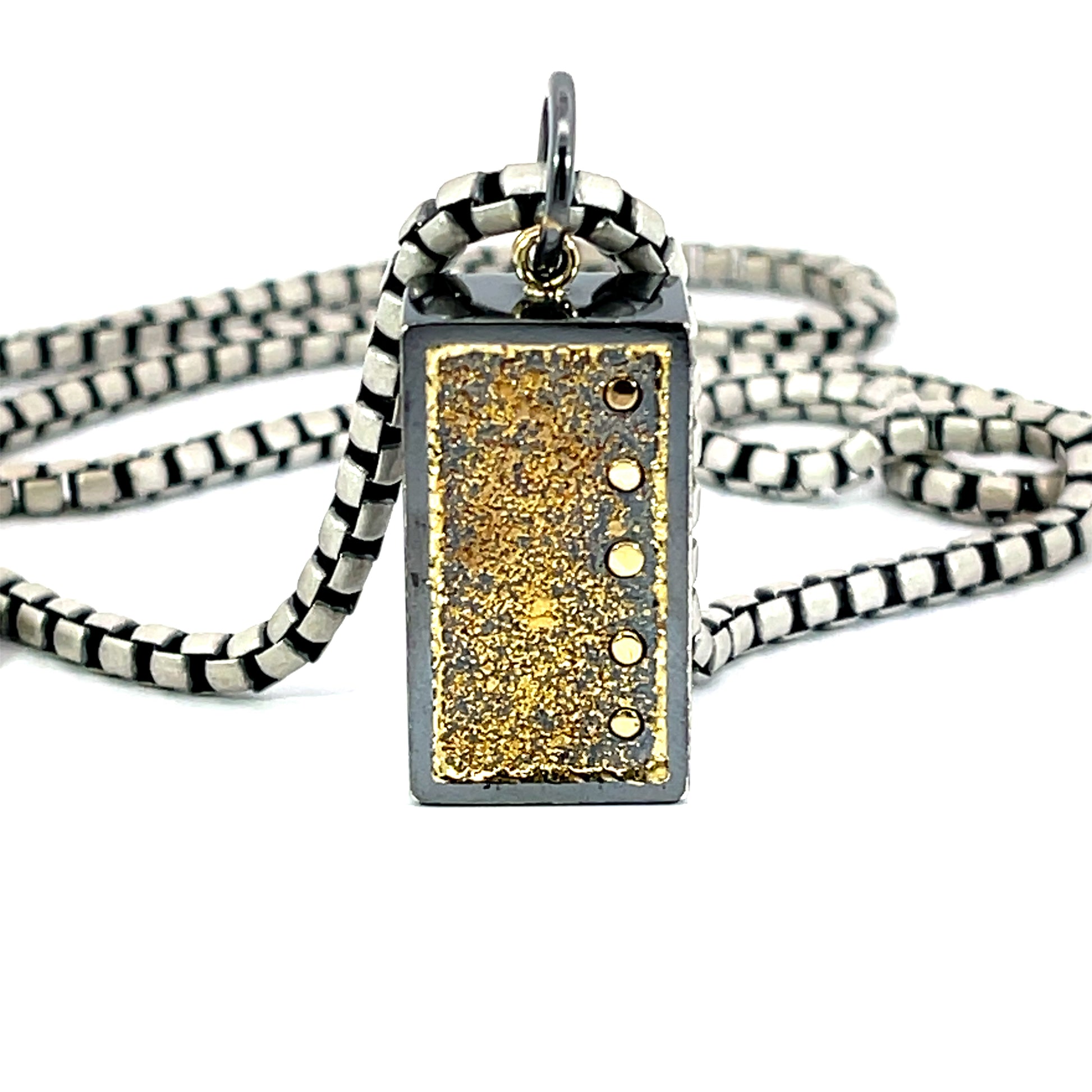 Men's Oxidized Sterling Silver Rectangular Pendant with 18k Yellow Gold Rivets and 24k Gold Detailing