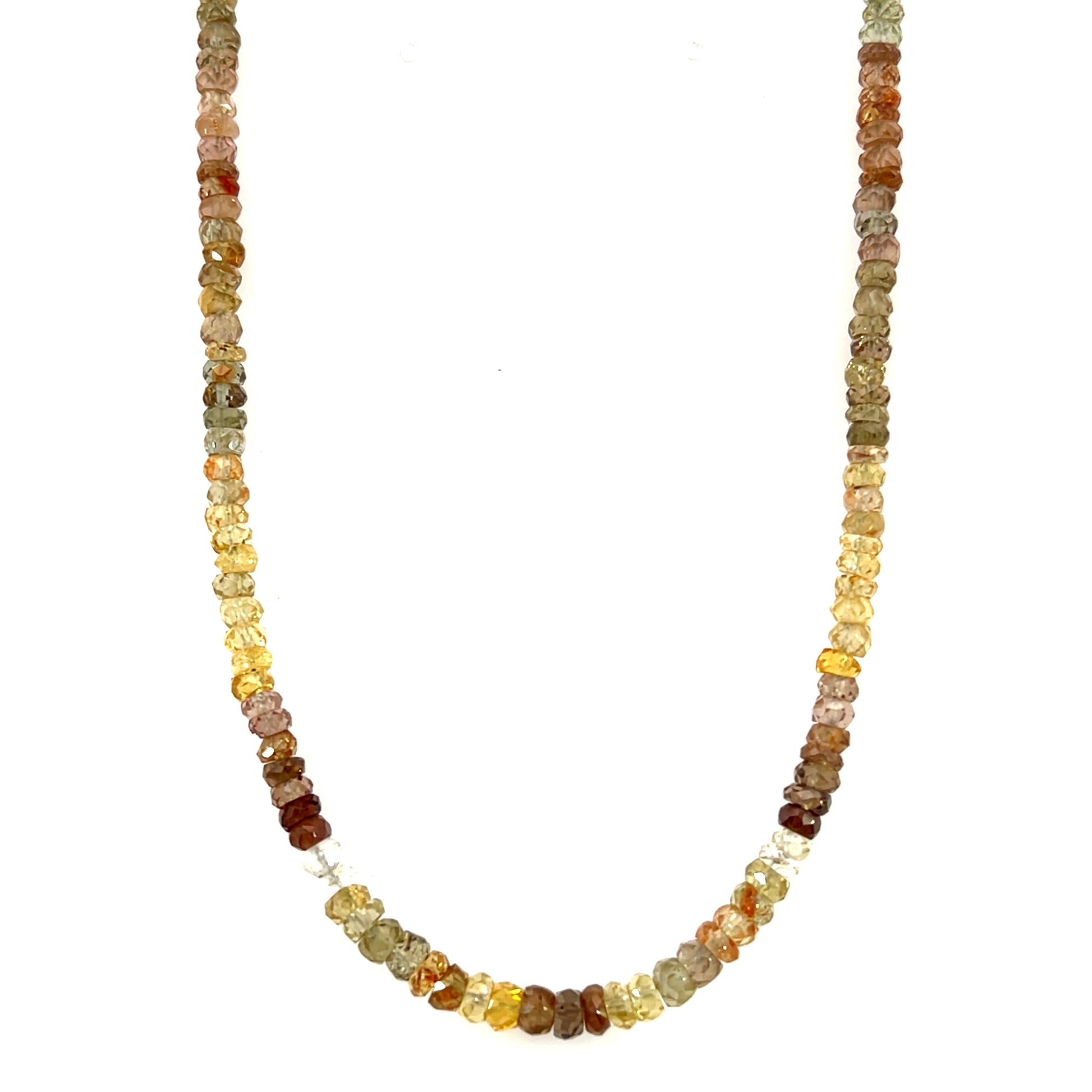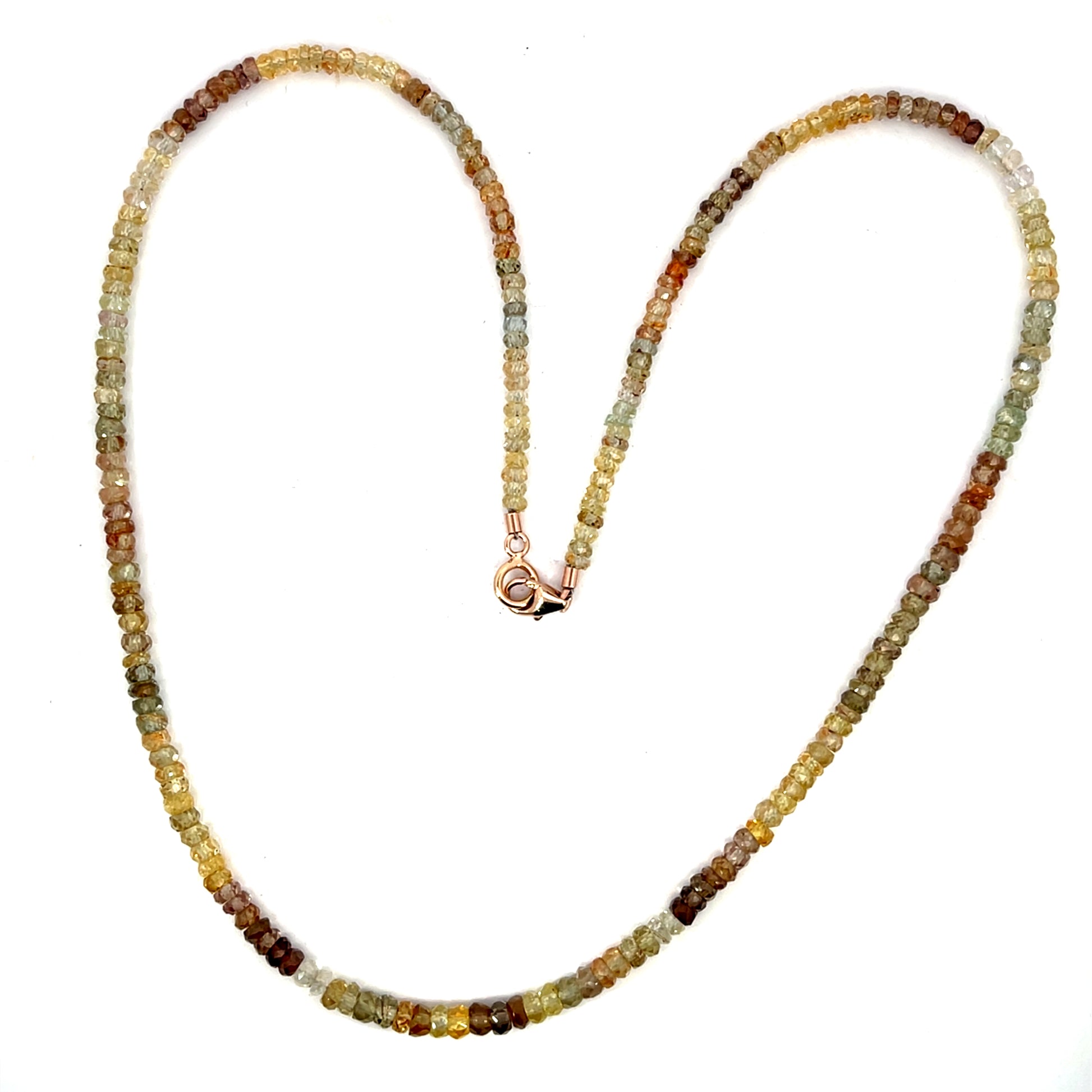 A multicolor brown zircon necklace with a rose gold clasp. 18" long. This necklace was made and designed by llyn strong.