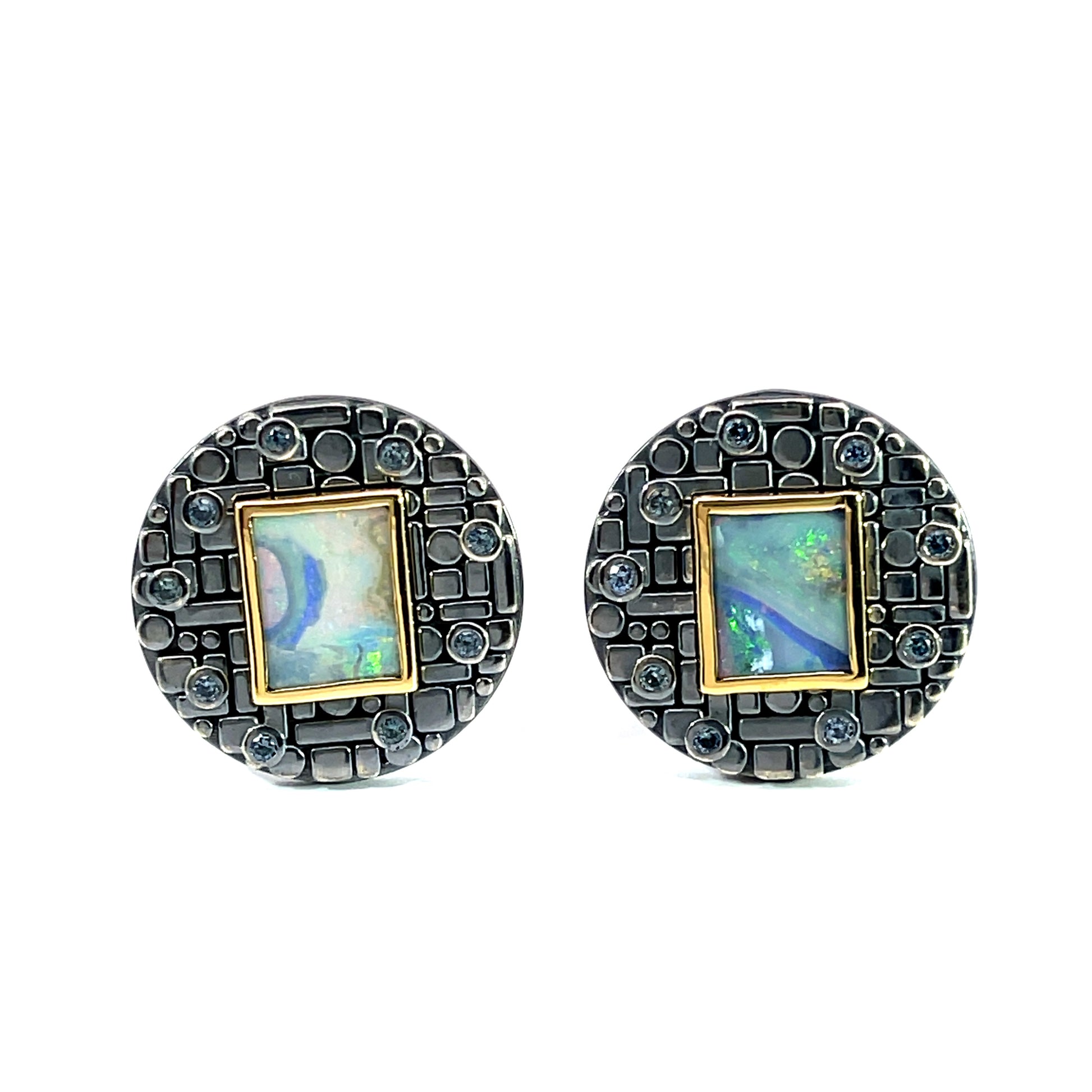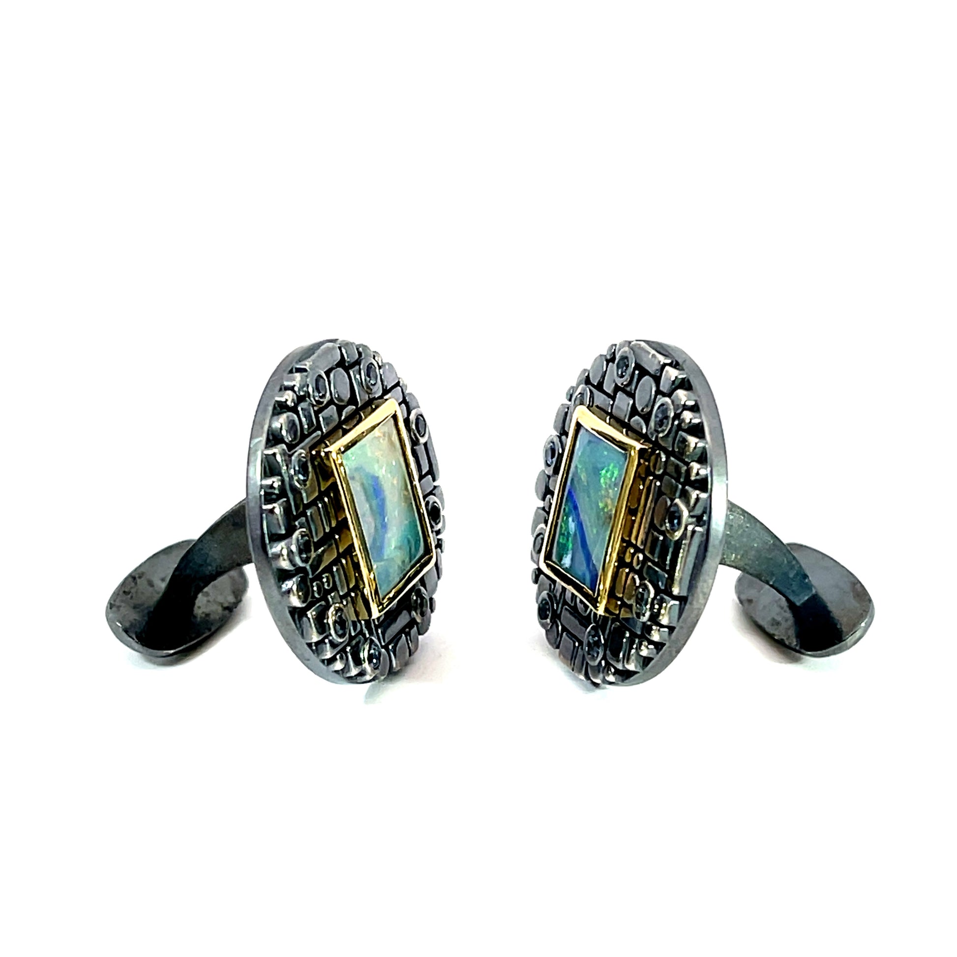 Opal and Sapphire Bits and Pieces Cufflinks with Oxidized Sterling Silver and 18k Yellow Gold