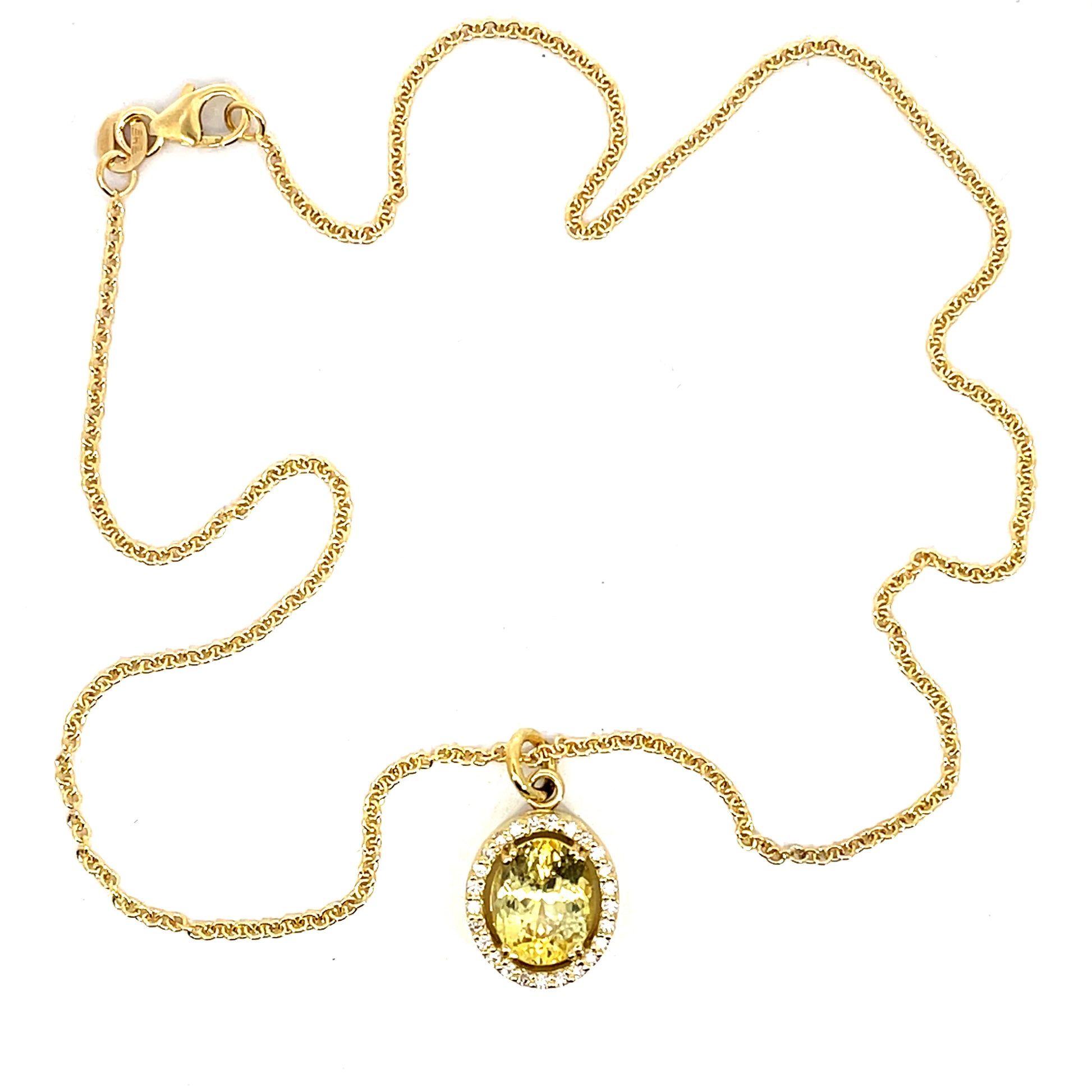 Oval Yellow Sapphire Halo Pendant in 18k Yellow Gold