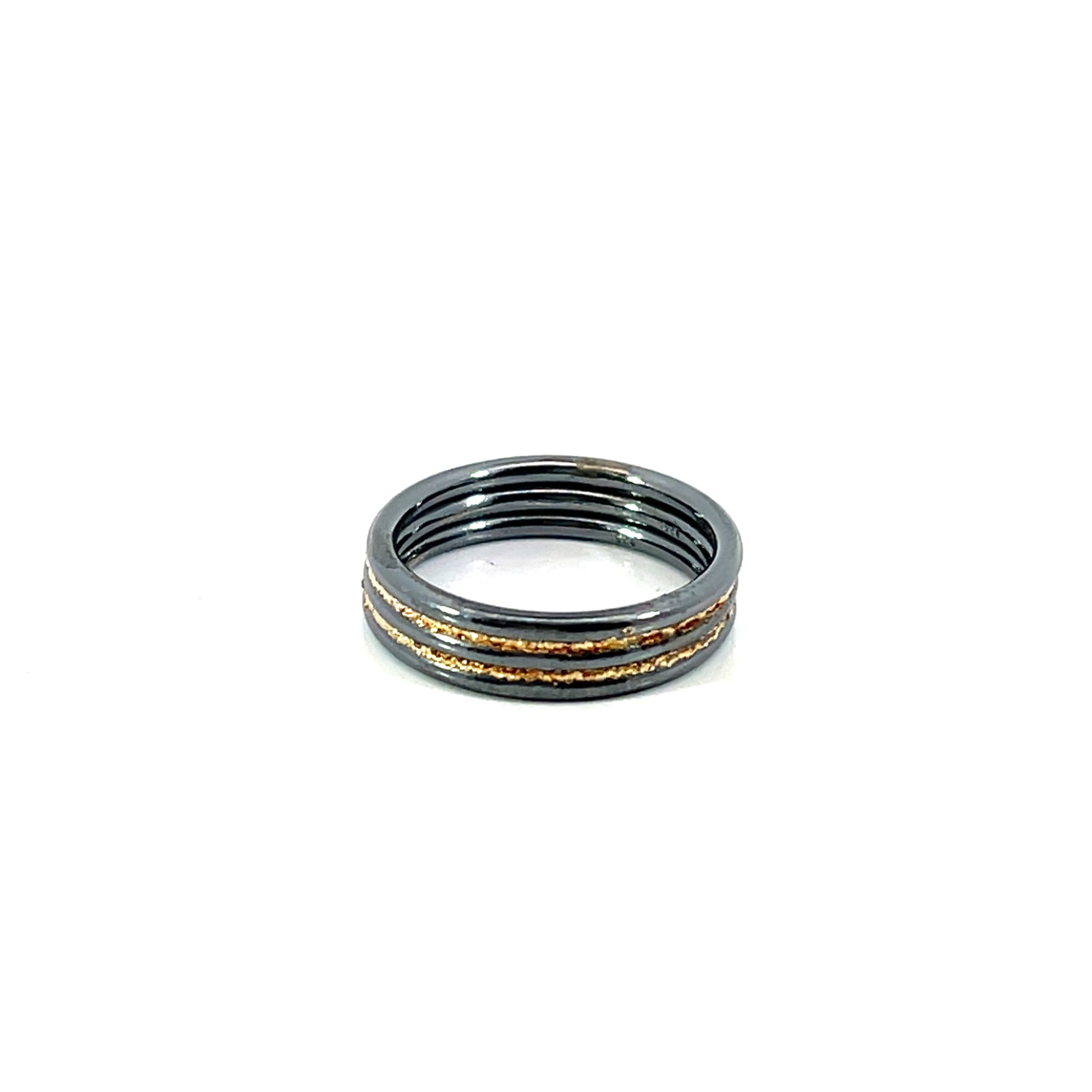 Oxidized Sterling Silver and 14k Gold Triple Band