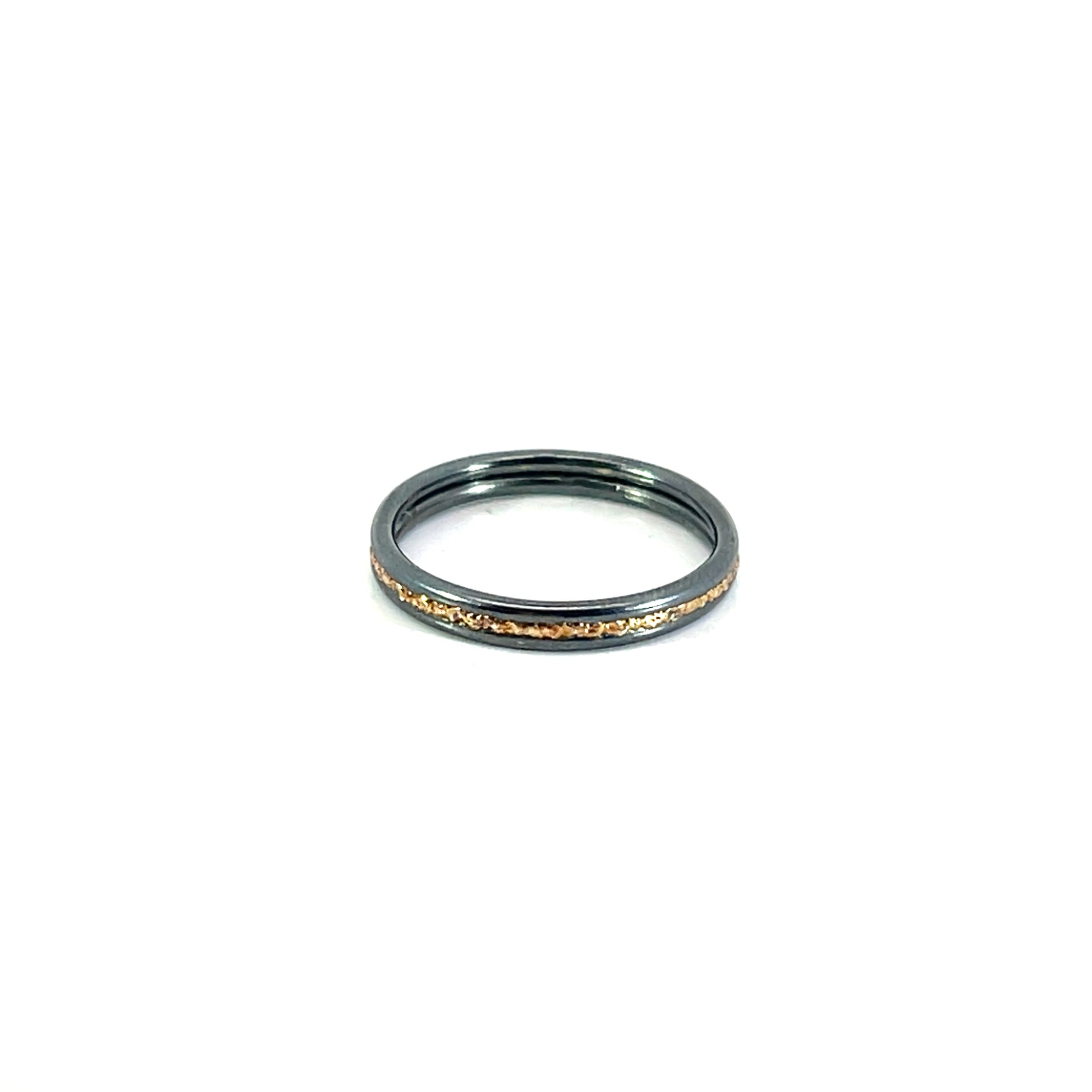 A oxidized sterling silver and 14k gold "Double Band" ring. Size 5.5. Designed and made by Erin Stuart.