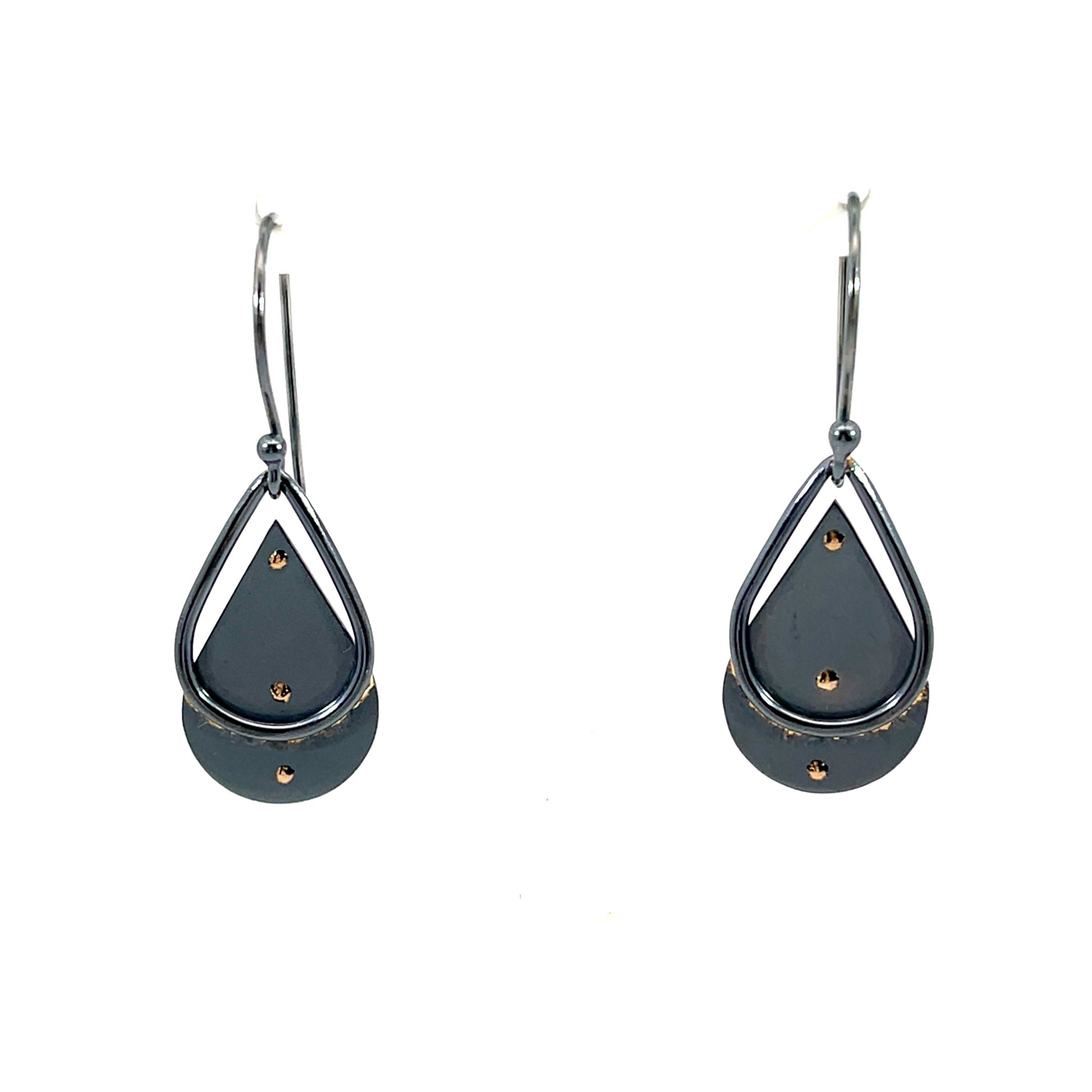 Oxidized Sterling Silver and 14k Yellow Gold Teardrop Dangle Earrings