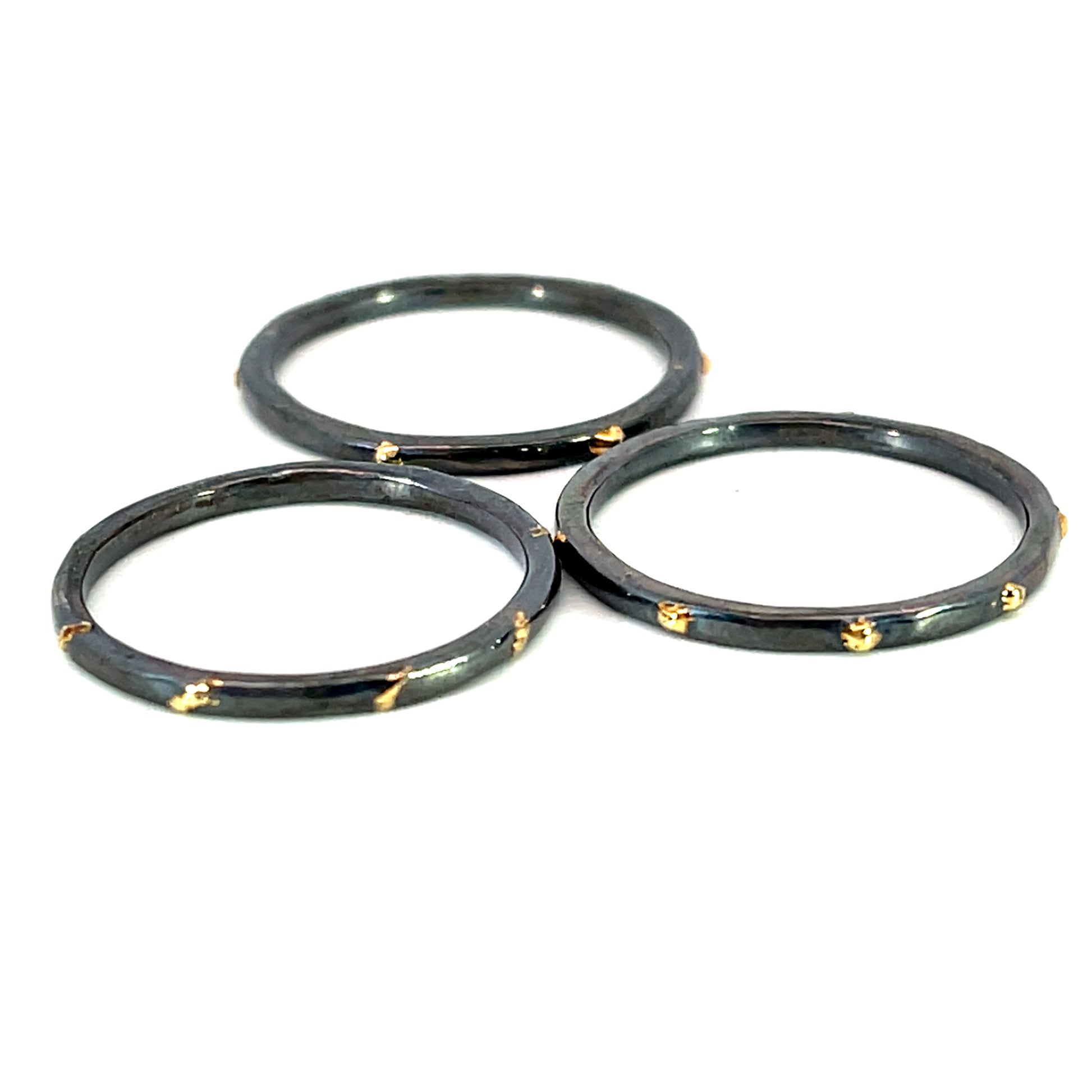 Oxidized Sterling Silver and18k Yellow Gold Stacking Rings