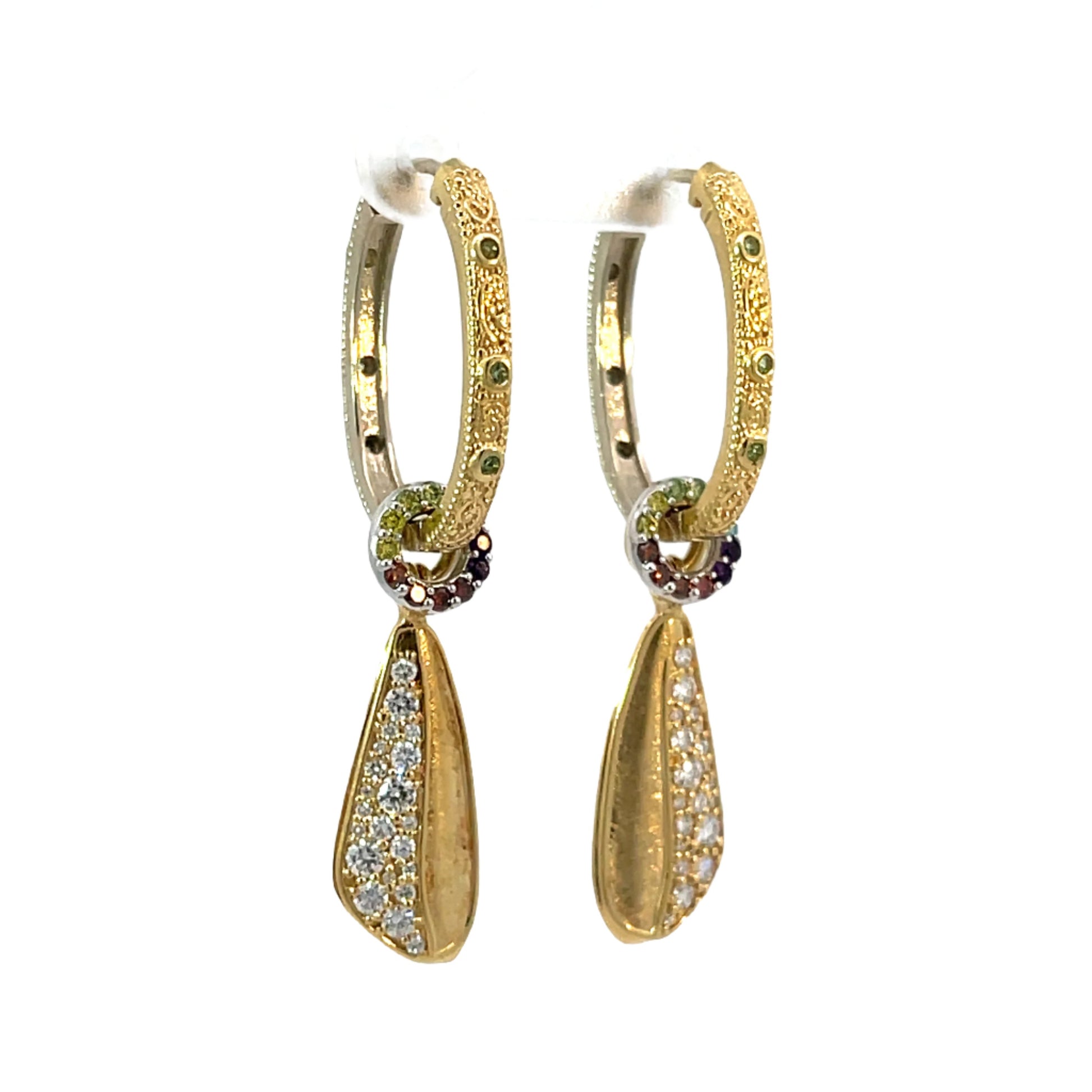 Shown with Reversible 18k Yellow and White Gold Tsavorite Garnet llyn Hoops and and 18k Yellow Gold Diamond Moth Earring Jackets.