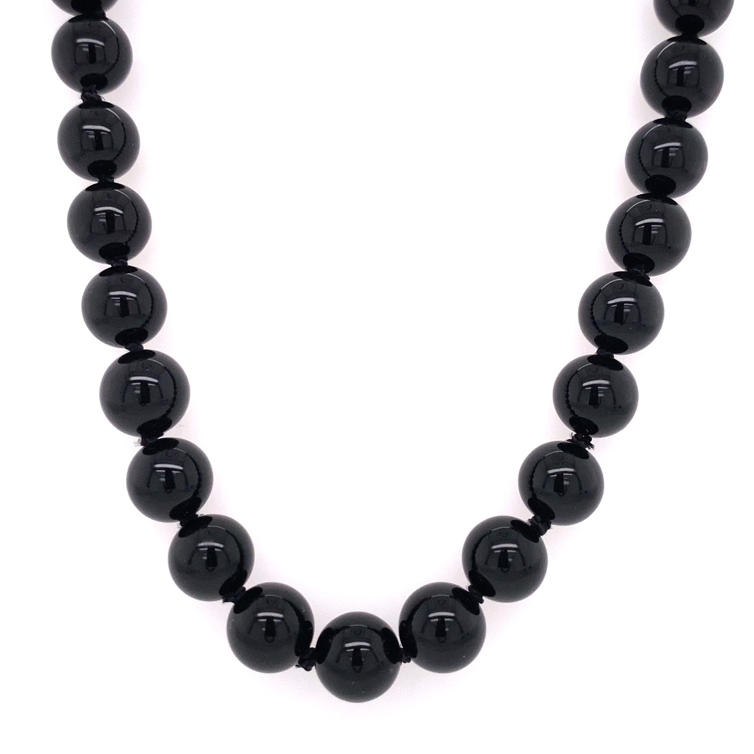 An round onyx bead necklace with a sterling silver clasp. 17" long. This necklace was made and designed by llyn strong.
