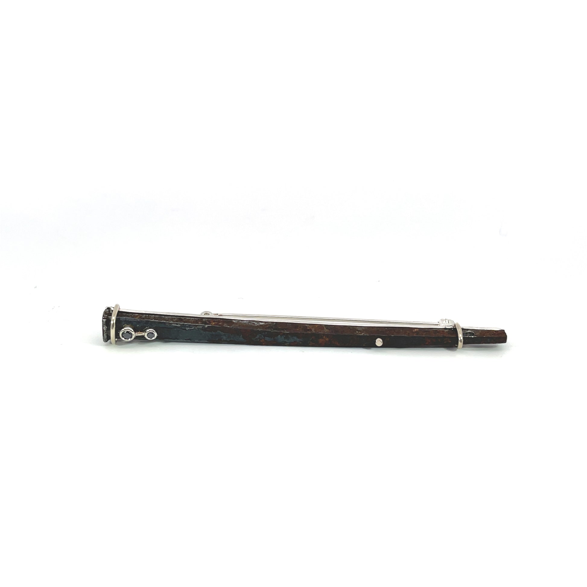 Rusted Nail Brooch with Black Diamonds Set in 18k White Gold