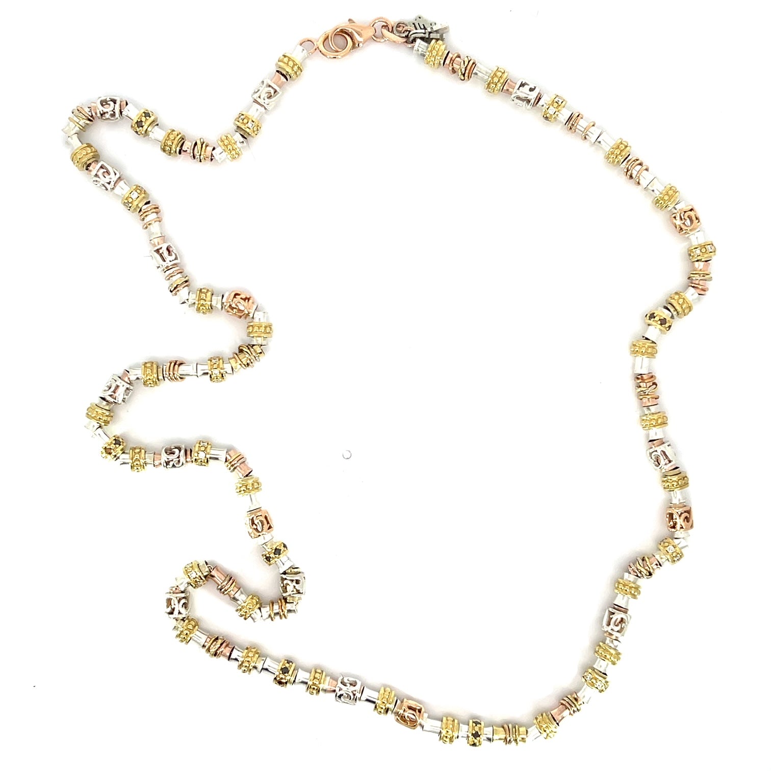Sterling Silver, 18k Yellow and Rose Gold Rondelle Necklace