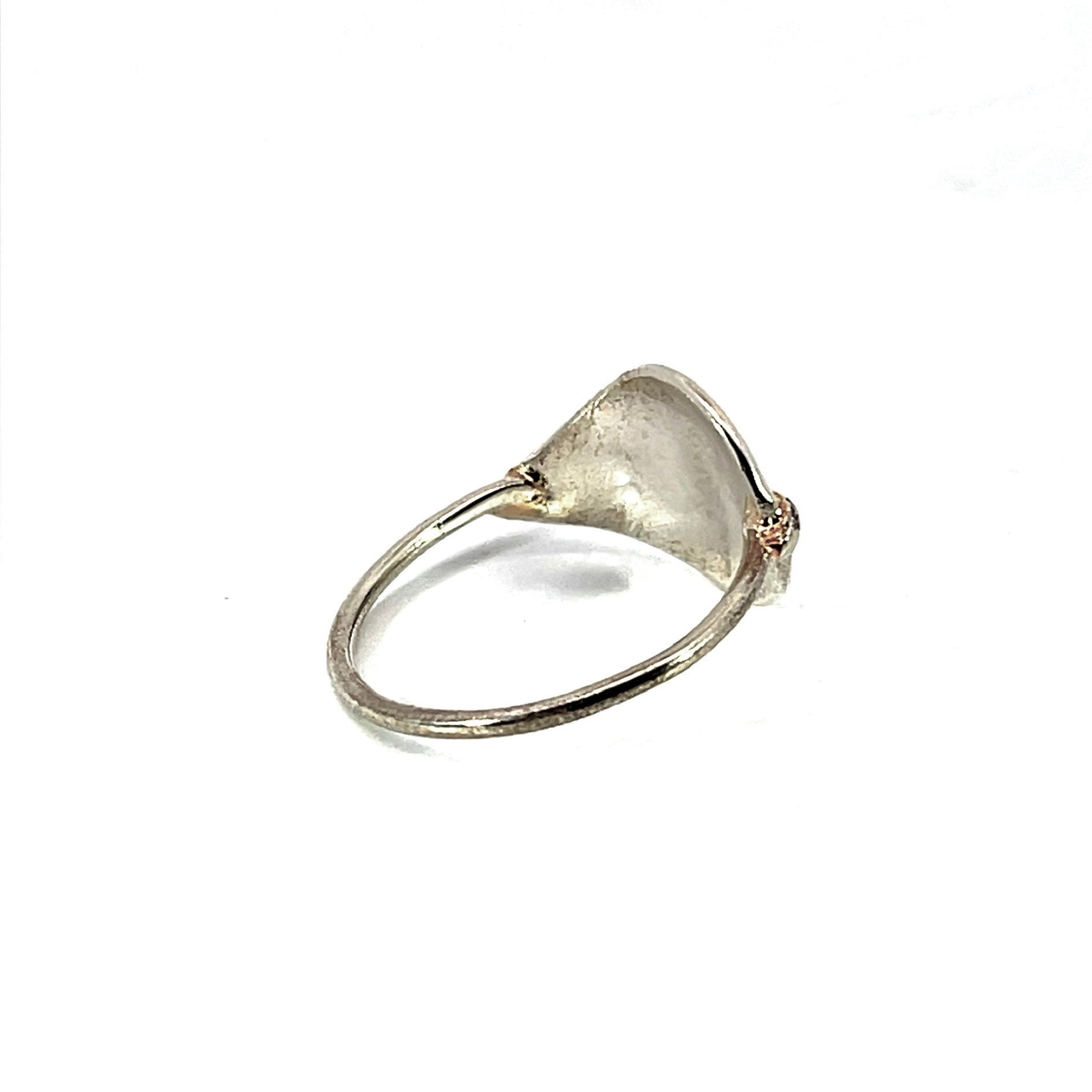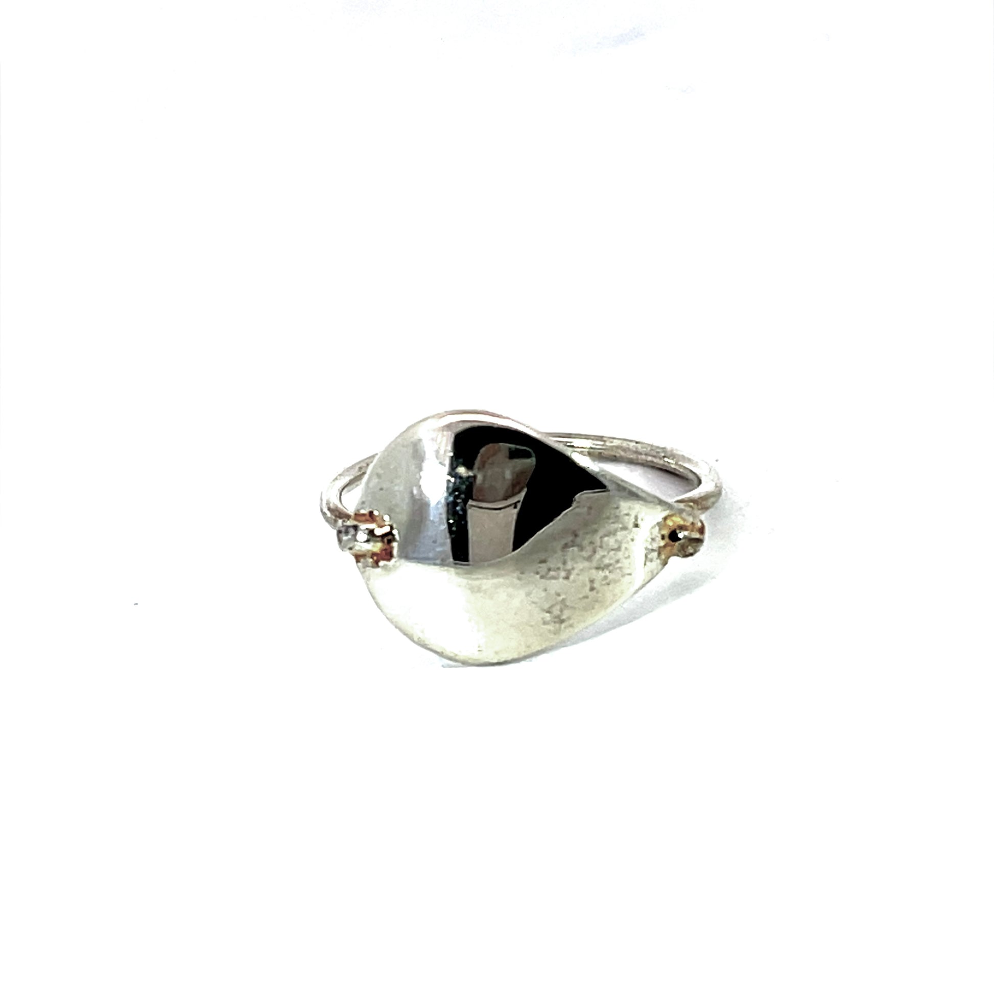 A sterling silver and 14k yellow gold pearshape ring. This ring was made and designed by Faron Justice.
