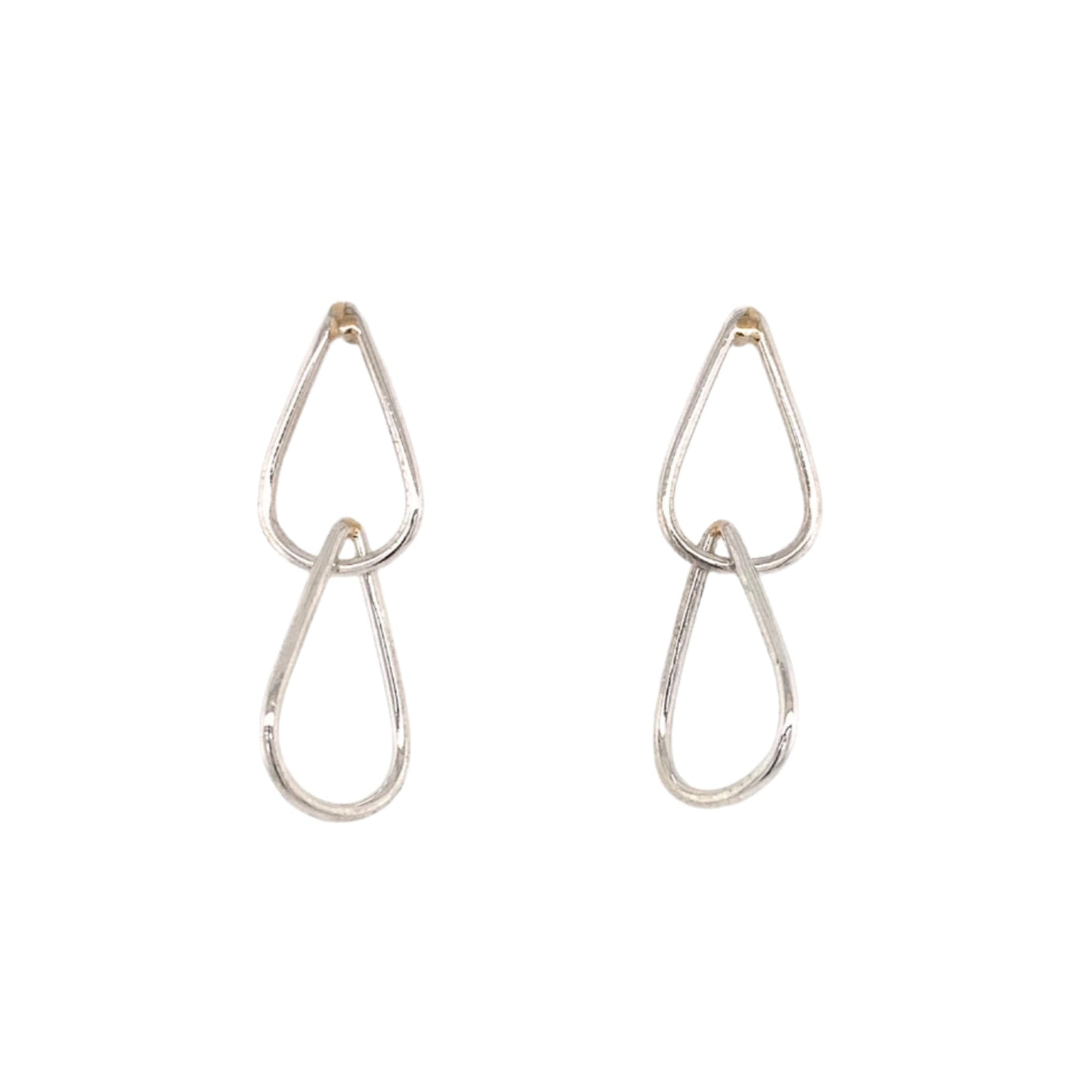 A pair of sterling silver and 14k yellow gold teardrop loop dangles. These earrings were made and designed by Faron Justice