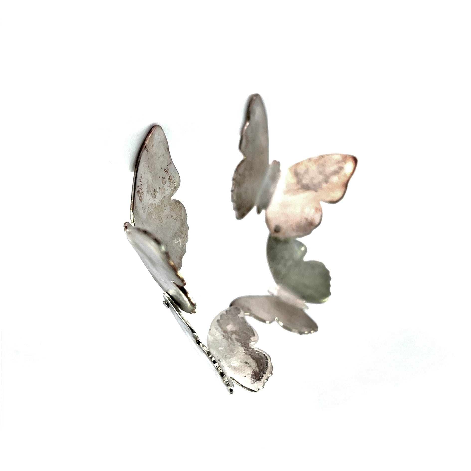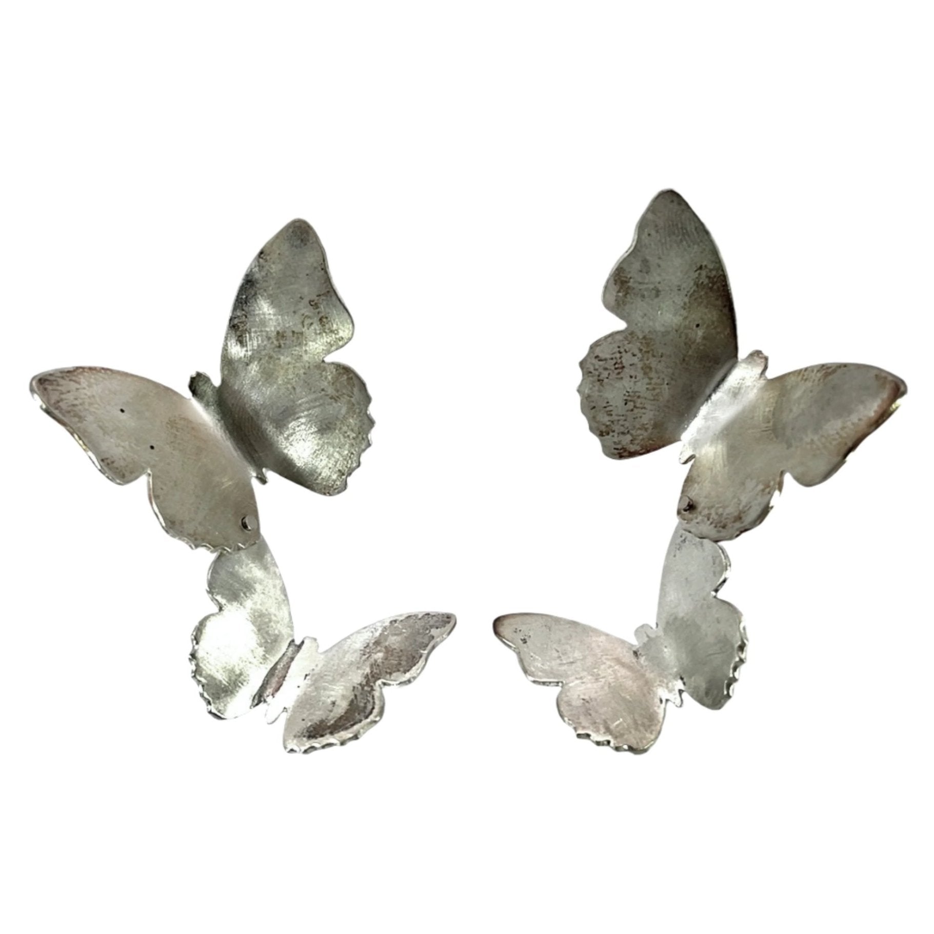 A pair of sterling silver riveted double butterfly earring studs. Made and designed by Azniv Chorbadjian.