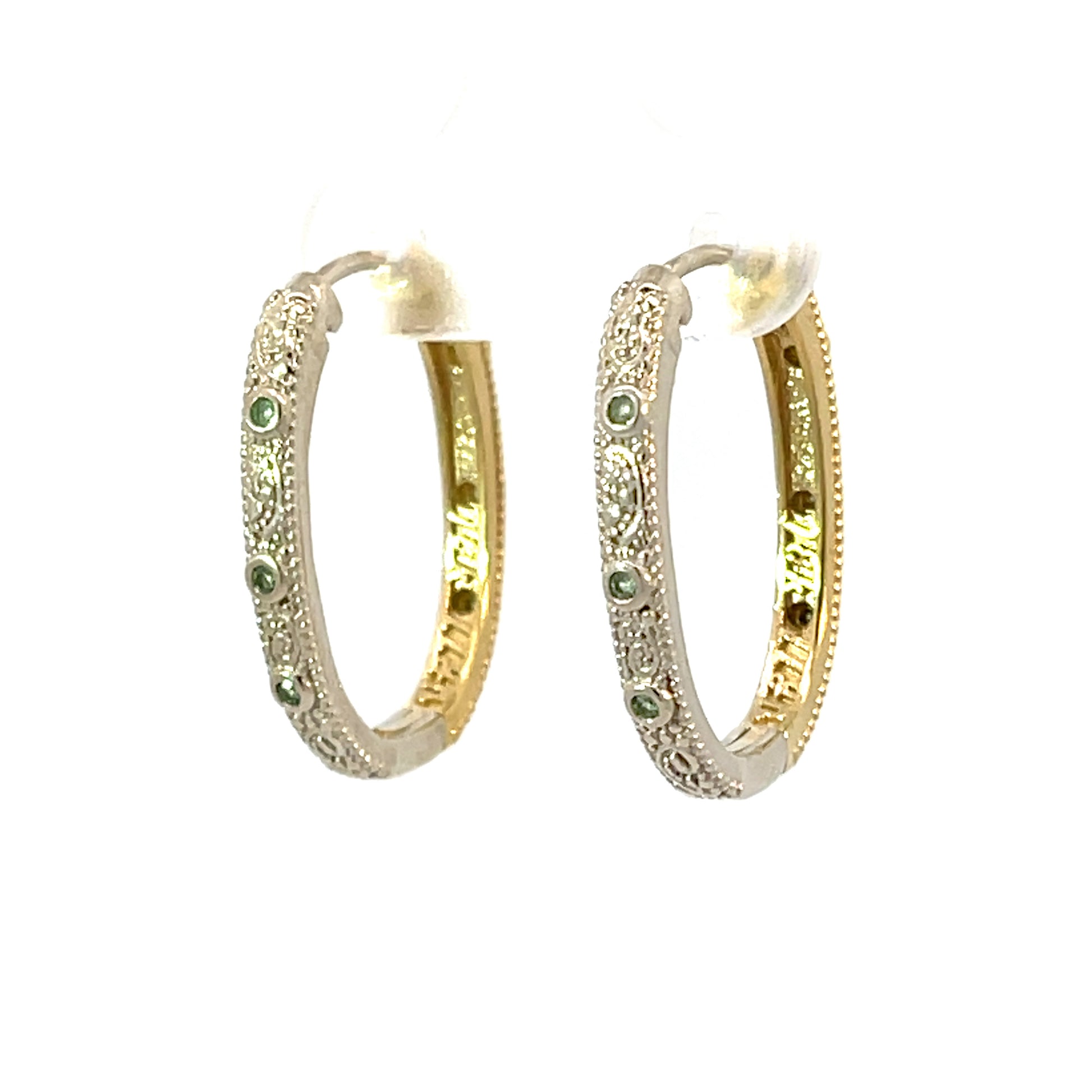 Reversible 18k Yellow and White Gold Tsavorite Garnet llyn Hoops